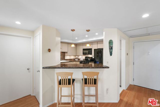 Experience the best of Playa del Rey living in this beautifully maintained condo located within the highly sought-after, guard-gated Manitoba West community. Just a short stroll from the beach, this inviting residence seamlessly blends coastal charm with everyday urban convenience. This updated two-bedroom, two-bath home features a bright, sun-filled open floor plan with thoughtful upgrades throughout. The welcoming dining area is ideal for hosting gatherings and flows effortlessly into the living room, which showcases stylish wood flooring, a cozy fireplace, and access to a private balcony perfect for morning coffee or relaxing at sunset. The updated kitchen offers sleek black appliances, granite countertops, ample cabinetry and a breakfast bar, creating a clean, modern space ideal for both everyday living and entertaining. Privacy is enhanced by a split-bedroom layout, with bedrooms positioned on opposite sides of the unit.The spacious primary suite includes a custom walk-in closet and a private ensuite bathroom, providing comfort and tranquility. The second bedroom is well-suited for guests or a home office. Additional conveniences include an in-unit washer and dryer, a large private storage unit conveniently located down the hall, and two tandem parking spaces. Manitoba West offers resort-style amenities, including a 24-hour guard-gated entrance, sparkling pool, two jacuzzis, tennis and pickleball courts, a fully equipped gym, clubhouse, and ample guest parking. Just moments from local dining, coffee shops, and coastal paths, this home invites you to enjoy beachside brunches, evening strolls, and the relaxed lifestyle Playa del Rey is known for. This is more than a home, it's a lifestyle! Your coastal sanctuary awaits!