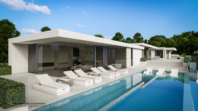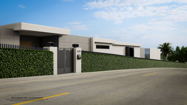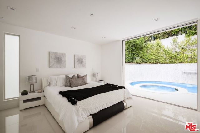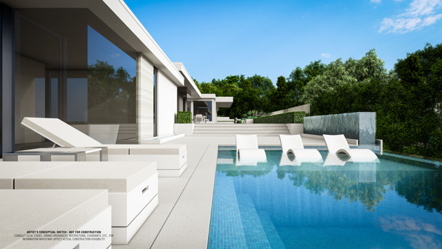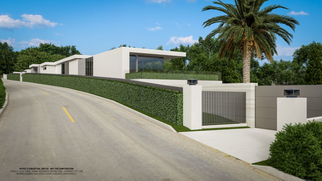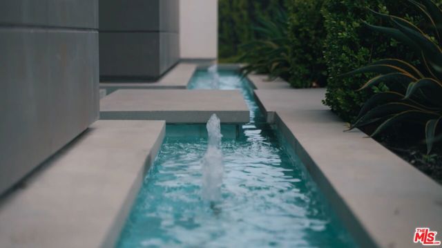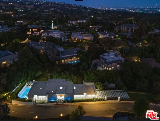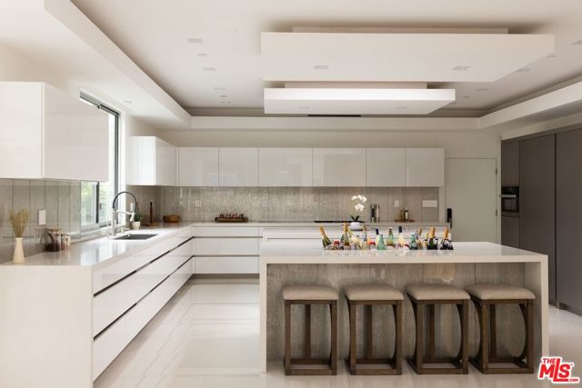 Set behind gates on a premier and prestigious Beverly Hills street (Beverly Hills proper - not BHPO), all on one single level, this newly rebuilt smart home seamlessly blends cutting-edge technology with refined modern luxury. Greeted by approximately 175 feet of frontage and impressive curb appeal, the residence invites you across floating steps above a serene reflecting pool, where a custom-designed pivot door unveils bold, sophisticated modern architecture. Inside, expansive floor to ceiling Fleetwood pocket doors disappear to reveal curated greenery and treetop vistas while creating a fluid indoor-outdoor living experience. Gleaming porcelain floors and tray ceilings add volume and sophistication to the open-concept layout. The living room centers around a dramatic, floor-to-ceiling bookmatched slab fireplace. Multiple Primary bedrooms with ensuite bathroom designs, large walk-in closets and floor to ceiling Fleetwood pocket doors leading to a magnificent resort style pool & spa experience. The showpiece kitchen is a chef's dream; complete with two separate islands, one prep island, and one buffet/breakfast bar with recessed countertop beverage chiller, sleek custom European designed cabinetry, Miele appliances including steam and speed ovens, two separate gas and induction cooktops, a built-in Meile espresso machine, two separate Bosch dishwashers and professional-grade Sub Zero Column refrigerator & freezer units. Entertaining is effortless with a nearby bar featuring a dual-zone beverage cooler and a striking floor-to-ceiling glass climate controlled wine cellar that's as artful as it is functional. Smart home integration offers seamless control over lighting, sound, security, and climate, enhancing both convenience and ambiance. Outside, enjoy multiple viewing decks, serene lounging spaces, a sparkling pool and spa, lush flat grassy yard and a generous motor court round out the grounds of this entertainer's haven. Just moments from Sunset Boulevard, Rodeo Drive, world-class dining, and premier Beverly Hills amenities with access to top-rated public schools, world renowned police and fire departments; this estate offers a lifestyle of effortless elegance, innovation, and distinction.
