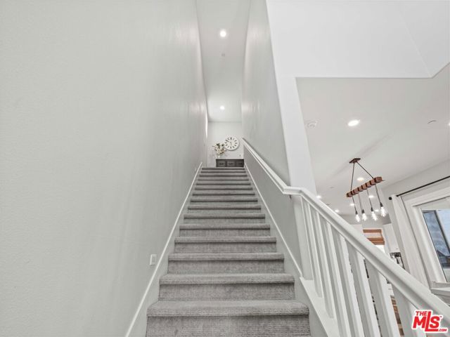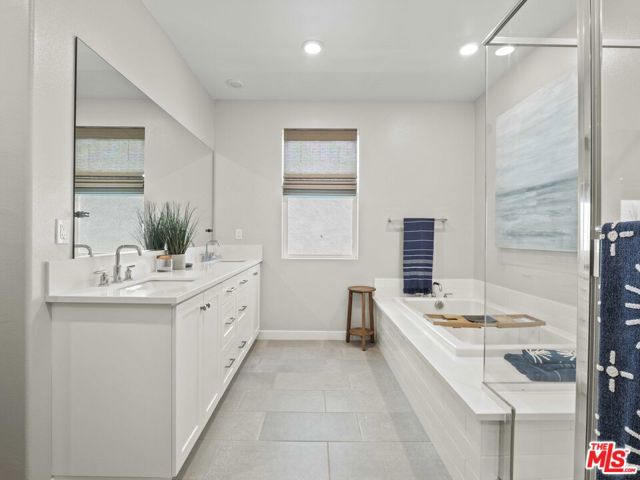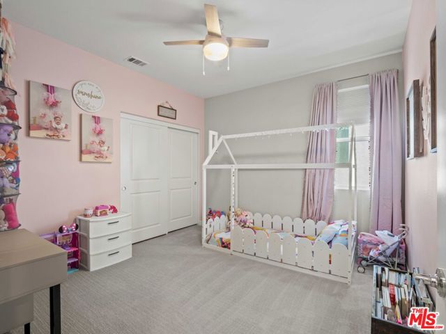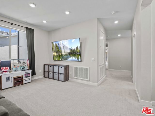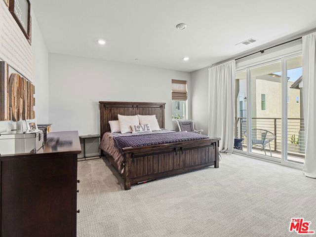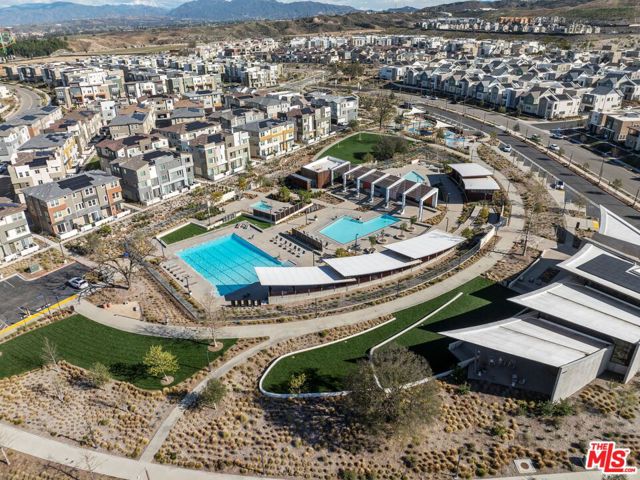 Experience the beauty of this nearly new Valencia Five Point home with 3 Beds, 2.5 Baths, complete with a spacious loft could make a 4th bed, solar, dual yards and 2 car garage. Designer touches throughout the residence creates an inviting ambiance, highlighted by a beautifully appointed kitchen and dining area featuring a shiplap wall design. The chef's kitchen boasts a glass tile backsplash and top-of-the-line stainless steel GE Monogram appliances, complemented by a custom center island with shiplap detailing and a convenient walk-in pantry. The living room is highlighted by a custom batten board wall, while the dining area features a large sliding door that opens to a meticulously manicured yard, adorned with a stylish light fixture. The bright and airy loft serves as a perfect retreat, while the primary suite offers a private balcony and a luxurious ensuite bathroom, complete with a soaking tub, a glass-enclosed walk-in shower, and a generous walk-in closet. Two additional spacious bedrooms share a full bathroom with dual sinks, and the upper level is completed by a well-appointed laundry room. Luxury vinyl plank flooring and upgraded window coverings add to the home's appeal, while solar panels enhance its energy efficiency. The dual fully landscaped yards feature a fully covered patio with a ceiling fan, perfect for outdoor entertaining. Located just minutes from the 5 Freeway, Highway 126, Six Flags Magic Mountain theme park, and all Valencia has to offer. Residents enjoy access to a weekly farmers market, spectacular resort-style pools with cabanas, gas barbecues, a children's play area, community gardens, walking and golf cart trails, and breathtaking mountain views throughout. Don't miss this opportunity to make this your New Home!!