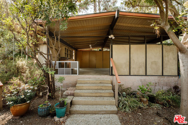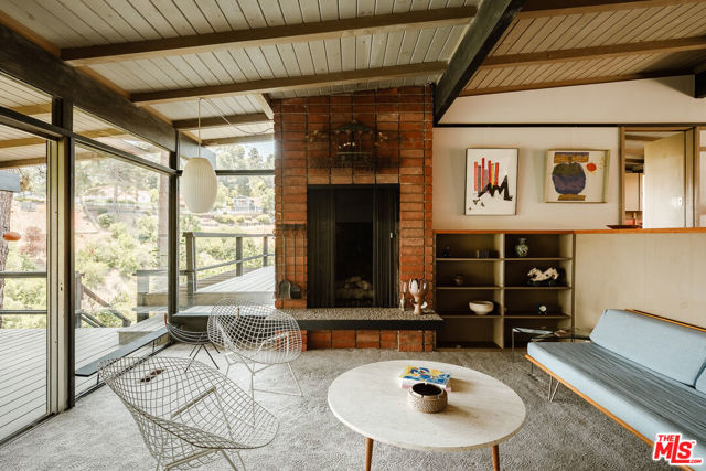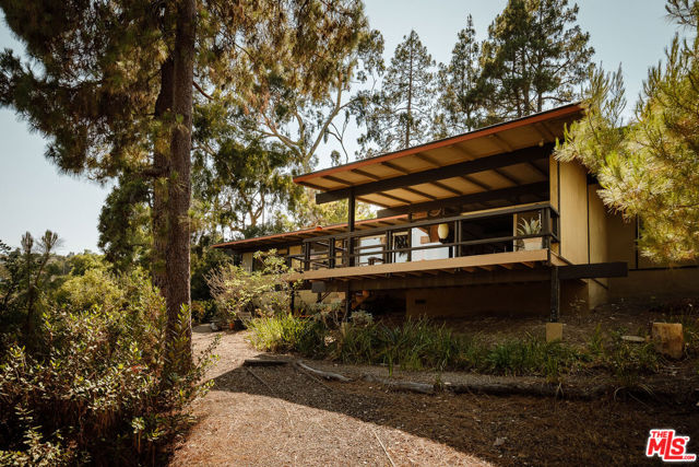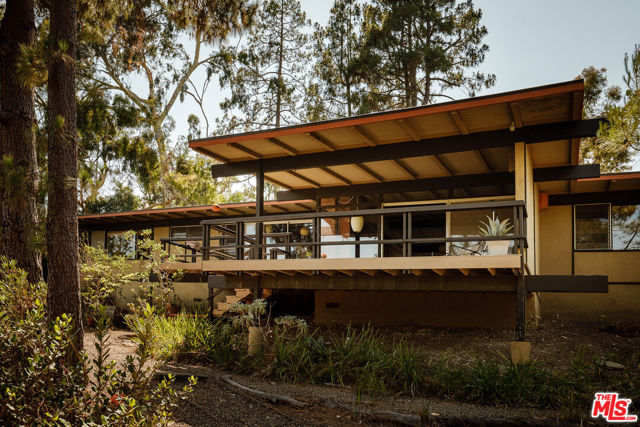 The Mitchell Residence, by architects Buff, Straub & Hensman (1959). Offered for only the second time since built- this distinctive and lovingly cared for home remains miraculously in almost entirely original condition. Situated on more than an acre in Rolling Hills Estates, the house embraces a tranquil and incredibly private setting with expansive floor to ceiling glazing. Recent update (as of 1/30/26): two large ficus trees have been removed from a neighbor's yard- this has opened up sweeping views of Mt. Baldy, Mt. San Gorgonio, Downtown Long Beach, the International Gateway bridge, coastline, and ocean. Morning light floods the home, and at nightfall, an array of twinkling lights illuminate expansive views of the city below. Exterior and interiors have been blended together seamlessly, with living spaces and adjacent decks placed amidst the towering pines to bring nature into every room. A split level delineates the open plan dining area, family room, and kitchen from the sunken living room and its monumental fireplace with cantilevered mantle. The details are exceptional: signature post and beam vocabulary, translucent glass screening, original light fixtures, and clever and abundant built-in cabinetry. Mature California native plantings populate the surrounding gardens. An idyllic canyon retreat with panoramic city, mountain, and ocean views, ocean breezes, and a sense of solitude that belies its close proximity to the vibrant beach communities nearby.