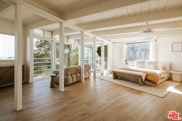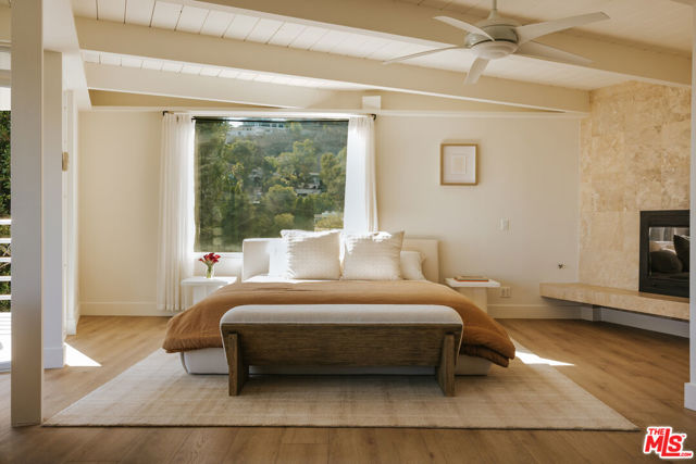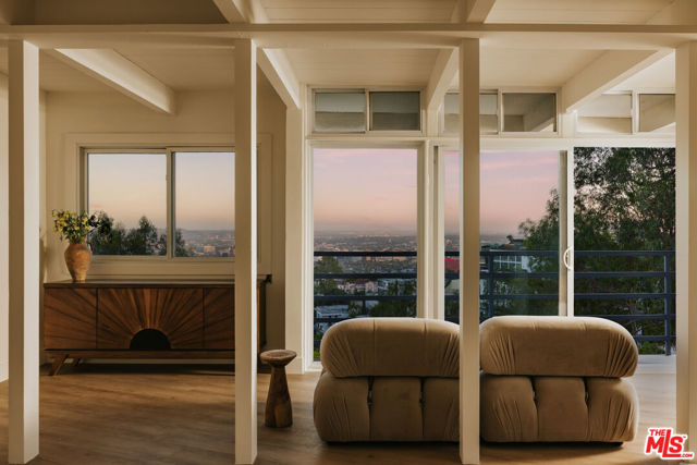 This isn't just another house, it's a statement. Perched above Sunset Boulevard in one of West Hollywood's most coveted enclaves, this iconic mid-century modern is privately tucked behind secure gates and redefines luxury living with razor-sharp architectural lines and cinematic views that sweep from Downtown to the Pacific Ocean. Step through sculptural stainless steel doors into a tranquil entry courtyard, setting the tone for the refined experience that awaits within. The moment you cross the threshold, floor-to-ceiling glass walls frame a sweeping panoramic canvas, stretching from the downtown skyline to the endless ocean horizon. Bathed in natural light, the great room flows with effortless sophistication, anchored by new hardwood floors, a striking fireplace, and expansive glass doors that dissolve the boundary between indoors and out. Step outside to an oversized deck that becomes your stage for unforgettable entertaining, from intimate cocktail hours to spontaneous dinner parties. Refined yet functional, the gourmet kitchen showcases textured quartz countertops and bespoke bar seating, complemented by handcrafted Zia tile and top-of-the-line appliances. Upstairs, the primary suite is enveloped in floor-to-ceiling glass walls, opening to a private corner balcony with captivating city views. A romantic fireplace adds warmth and ambiance, while the spa-inspired bath, with its steam shower, oversized soaking tub and dual walk-in closets, invites an unparalleled living experience. Two additional well-appointed bedrooms and a laundry area complete the top floor. The lower-level guest suite is a true sanctuary; a forest-ensconced retreat with a private entrance, awe-inspiring city vistas, and its own expansive deck, perfect as a creative studio, guest haven, or serene escape. Additional highlights include a terraced hillside dotted with citrus trees, a tranquil side patio crafted for utmost relaxation, and ample parking with a two-car garage plus carport. Where jet-set style meets California sophistication. Just moments from the city's most iconic shopping, dining and leisure, 8448 Franklin Ave offers unmatched privacy and sweeping perspectives in a world-class location. One you won't want to miss.