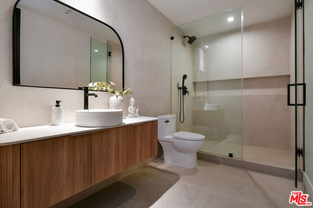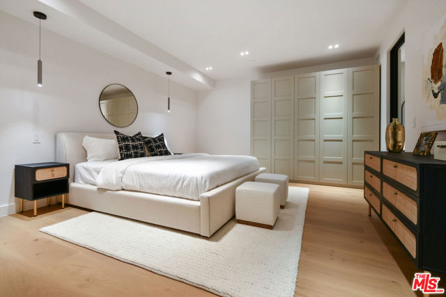 Welcome to 112 South Valley, a newly constructed, modern masterpiece that redefines luxury living. Perfectly positioned on one of Burbank's most coveted cul-de-sacs, this home offers the best of both worlds: the peace of mind that comes with Burbank's exceptional city services, outstanding public safety, and top-rated schools, paired with the prestige, warmth, and community charm of Toluca Lake. The designer thoughtfully curated every detail of this 6,043 square-foot residence to showcase architectural brilliance and deliver the soul-stirring promise of a life well-lived. From the moment you arrive, the dramatic, solid white oak pivot front door opens to a world of refined elegance. Soaring ceilings and walls of Marvin windows flood the space with natural light, while rich textures, such as Marmorino Italian plaster and Portolan limewash, create an ambiance of sophistication. Whether you're gathering in the expansive living room, relaxing in the family room, or entertaining in the chef's kitchen adorned with custom Shinnoki walnut cabinetry, oversized double faucet sink, Thermador appliances, and a sleek butler's pantry, this home is an experience of flow, function, and flawless beauty. Five en-suite bedrooms, each a private retreat, offer comfort and serenity. The primary suite, situated above the expansive landscaped grounds, features a spa-inspired bath, a custom walnut walk-in closet, and a balcony where you can greet the day with sunshine and the soothing sounds of the morning air. Downstairs, a state-of-the-art theater, rec room, bonus space, and a sleek bar come together to create the ultimate setting for fun and entertainment, whether you're hosting game night, enjoying a movie with family, or simply unwinding with friends in style. Step outside and be transported. The backyard is a sanctuary of its own, featuring a black-bottom saltwater Pebble Tek pool with a Baja shelf and spa, two innovative motorized patio systems, an Ipe wood fire pit bench, and a complete outdoor bath/mudroom. Entertain effortlessly or unwind in total privacy beneath the stars. The home offers the latest in technology and convenience, featuring Control4 smart home automation, a quad-zone Carrier climate control system, an integrated sound system, custom lighting, and sleek Samsung washer/dryers. Additional amenities include fully underground electrical, solar panels for enhanced energy efficiency, and an electric car charger in the spacious garage. Every element from fluted limestone accents to custom linear drain installations reflects the highest standards of design and craftsmanship. However, the true luxury of 112 South Valley lies in the lifestyle it offers. Here, neighbors greet each other by name. Stroll into Toluca Village for your morning coffee, dine al fresco at your favorite local spot, or attend a community event where everyone feels like family. You're minutes from top-rated schools, major studios, the Lakeside Golf Club, and iconic LA landmarks like Griffith Park and the Hollywood Bowl. 112 South Valley is more than a home, it's your place in a vibrant, welcoming community with a rare opportunity to live in modern splendor, in a neighborhood where connection and character matter.
