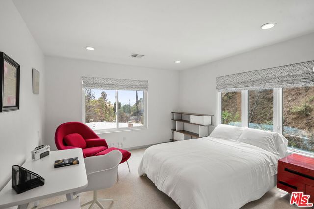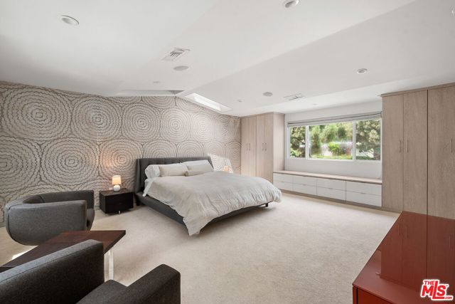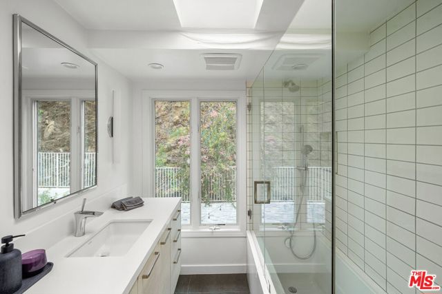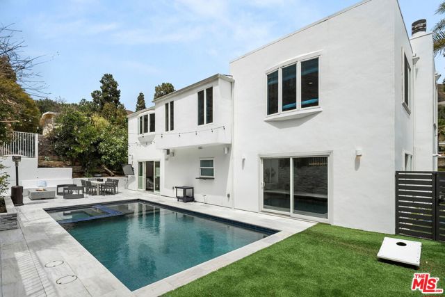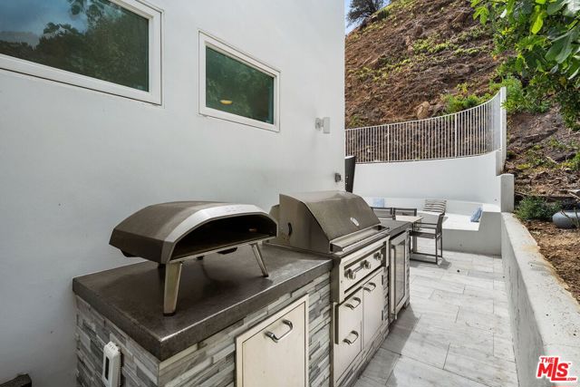 Welcome to this beautifully updated 4-bedroom, 3-bathroom contemporary residence, ideally situated in the heart of Pacific Palisades. This home combines refined modern design with a relaxed California comfort with an exceptional indoor-outdoor living experience. The property features a spacious open-concept floor plan with a casual sitting room and an expansive living room perfect for both entertaining and everyday living. The modern kitchen is appointed with high-end Wolf and Subzero appliances, clean lines, and seamless flow to the adjacent dining and living areas. Upstairs, you will enjoy partial ocean and vineyard views. The home has been fully remediated and meticulously maintained after surviving the recent wildfire, offering peace of mind alongside contemporary style. The primary suite includes custom California Closets, adding both elegance and functionality. A fully renovated garage, also outfitted with a California Closets storage systems, provides an organized and versatile space to meet a variety of needs. With four well-proportioned bedrooms and three modern baths, all with Toto toilets, this home offers flexibility and comfort for families or those seeking space to live and work. Gorgeous outdoor space with built in seating, a fire pit and a large saltwater pool sits alongside a fitted outdoor kitchen with a BBQ and Ooni Pizza oven. Do not miss this rare opportunity to own a turn-key home that balances modern amenities, resilience, and the best of Palisades living.