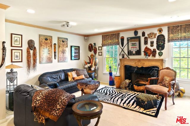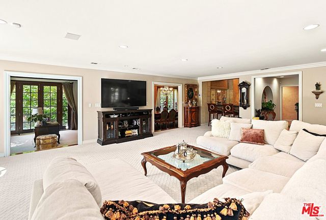 Set on nearly half an acre in a private, picturesque setting, this six-bedroom estate offers both grandeur and versatility for families seeking space, comfort, and lifestyle. Designed with a rare second-floor dual-wing layout, the residence balances expansive outdoor entertaining areas with future expansion possibilities ideal for a large or extended family.A gracious foyer with soaring ceilings and an elegant chandelier opens to a sunlit living room anchored by a full wet bar, perfect for celebrations large or small. The formal dining room sits adjacent to a chef's kitchen, featuring an oversized stone island, expansive countertops, dual workstations, a six-burner cooktop, two sets of double ovens, and two dishwashers more than ample to make both weekday dinners and gala soires a breeze. An executive den with built-in wood cabinetry offers canyon and mountain views, providing the perfect perch for work or contemplation.The grand staircase leads to a vaulted second-story foyer, flanked by a three-bedroom wing with en-suite baths, built-ins, and a shared lounge area. Dividing the space is an upstairs gym with a sauna, while the other wing accesses the theatre like media room and the primary suite. The master suite features a sitting area, the master bedroom has vaulted ceilings and an expensive view, wood-burning fireplace, balcony access through French doors, and a spa-inspired bathroom with a jetted tub, rain steam shower with seating, dual vanities, and dual closets comfort, privacy, and indulgence all in one.The grounds are equally impressive, with a resort-style pool and spa framed by natural stone, a sport court, multiple terraces for entertaining, a built-in barbecue, and lush, mature landscaping ensuring privacy. Beyond the sports court, an additional expanse of land invites future enhancements a guest house, expanded terraces, or even a second residence. This beloved estate has been the backdrop for years of memorable gatherings and cherished family life. Now it awaits its next chapter. With a fresh designer's eye, updated colors, and modern textures reflecting today's palette, this home offers an extraordinary opportunity to reimagine its grand spaces while preserving the scale, amenities, and character that make it truly remarkable.