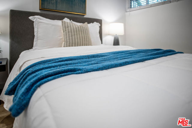 Enjoy refined living in this extensively remodeled contemporary unit featuring an open-concept floorplan and clean aesthetic throughout. Upon entry, take in the sleek and welcoming living space with new luxury vinyl plank flooring throughout, recessed lighting, and well-appointed kitchen with quartz countertops, subway tile backsplash, water filtration system, and stainless steel appliances including a gas range. The kitchen opens to spacious living room with sliders to a generous-size outdoor balcony that is ideal for entertaining. Down the hallway enter into a private and peaceful primary suite with abundant closets and storage, tiled shower with frameless glass doors, and stylish vanity area with decorative herringbone backsplash and en-trend finishes. Additional highlights include double-pane windows and gated parking with extra storage. Quaint 26-unit building with open breezeways and outdoor pool. Tree-lined street with park and abundant shopping and dining destinations nearby.