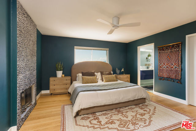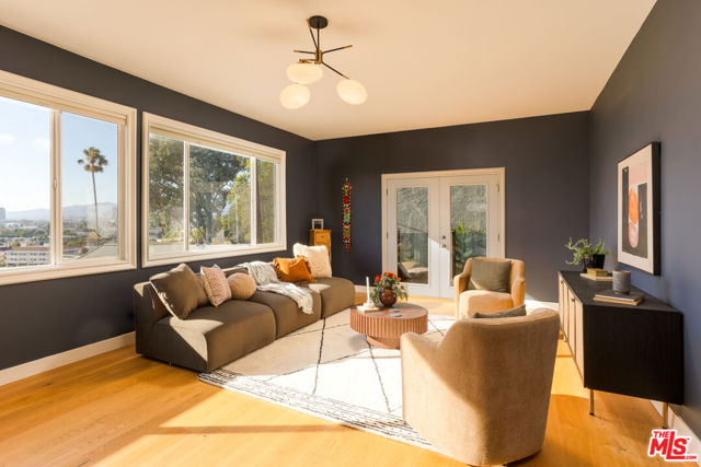 On the slope of Adams Hill, where the city stretches below and sky opens above, this meticulously renewed home is designed to catch the light at every hour. Morning begins through wide picture windows, rising across European oak floors; evenings settle by the fireplace as the city below flickers to life. The entry, with its tall ceilings and double doors, gives way to a living space both open and composed. The kitchen is deliberate in its choices- Bosch appliances, induction cooktop, terrazzo floors, Cambria quartz counters- streamlined and sunlit. Just beyond, the dining room opens to the balcony, a natural pause where meals stretch longer with mountain views in the distance. Upstairs, the primary suite carries its own hearth, an understated gesture that anchors the room. The en suite bath is clean-lined and quiet in terrazzo, while two additional bedrooms share the light, each with thoughtful detailing. Bathrooms across the home echo the same care- custom cabinetry, Toto bidets, considered finishes. The home's rhythm extends to its quieter corners: a main-floor bedroom with balcony doors thrown open, a finished basement ready to flex into a studio, office, or gym. Outside, a pergola shades a quiet lounge area, conversation lingering as the neighborhood hum fades to calm. Beneath the design, every system has been renewed with intention: energy-efficient roof, dual-zone HVAC with heat pump, upgraded 220v electrical circuits. A structure as thoughtful as its spaces. Moments from Adams Square and the vibrancy along Verdugo Boulevard, this is a home with outlook and grounding city lights in view, a sense of retreat at hand.