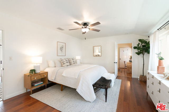 Nestled on a picturesque, tree-lined street, this spacious 4-bedroom, 2.5-bath residence offers a harmonious blend of comfort, style, and modern convenience. Thoughtfully designed indoor spaces flow seamlessly into the outdoors, creating an ideal setting for both everyday living and entertaining. Step inside to discover a generous living room and dining area with hardwood floors and fireplace. The open concept space leads to a bright family room with a high-pitched ceiling and giant slider doors to an inviting outdoor patio, lush gardens and SoCal living at its best. The primary suite is a serene retreat with its own en-suite bath and walk-in closet, while two well-sized bedrooms are at the front of the home and share the hall bathroom. A versatile fourth bedroom with its own half bath and laundry area provides flexibility for guests, an office, or creative use. A Garden Oasis: The exterior grounds are a true sanctuary. Stroll along meandering paths framed by lemon, persimmon, and pomegranate trees, complemented by grapevines and drought-tolerant landscaping. Discover three private patios, each offering its own unique ambiance for dining, entertaining, or simply unwinding. Modern Comforts include: Remodeled kitchen with dedicated storage space, Double-pane windows and dual HVAC system for efficiency, energy-saving 30-year cool roof, copper plumbing, updated electrical panel, hardwired Level 2 EV charger for eco-friendly living, single-car garage plus tandem driveway parking. This home offers not just a place to live, but a lifestyle blending modern amenities, timeless charm, and the beauty of nature. Fantastic Burbank schools.