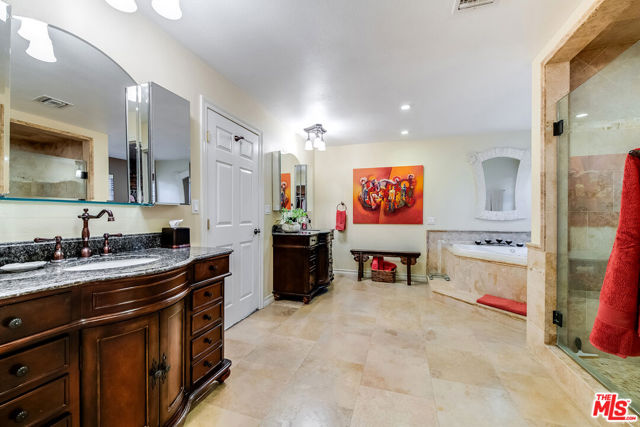 Welcome to this exquisite custom-built Tuscan-style residence, where timeless traditional design meets modern comfort. Offering 4 bedrooms, 4 bathrooms, and 3,206 sq. ft. of elegant living space, this home has been lovingly maintained in pristine condition for nearly two decades. The inviting entry opens to a gracious living room with a fireplace and a formal dining area, perfect for entertaining. A gourmet granite kitchen anchors the home with high-end stainless steel appliances, travertine floors, a walk-in pantry, and a charming breakfast nook filled with natural light. The romantic primary suite is a true retreat, featuring a spa-inspired bathroom with travertine finishes, soaking tub, separate shower, and a spacious walk-in closet. A versatile upstairs loft with balcony and a private downstairs guest suite provides flexibility for today's lifestyle. Throughout the home, rich details aboundhardwood floors, crown molding, recessed lighting, custom dual-paned windows with retractable screens, and designer finishes. Outdoors, enjoy resort-style living with a sparkling pool, lush landscaping, and multiple patio spaces ideal for gatherings. The two-car garage, previously used as a multi-purpose room, adds to the home's versatility, while the newly stamped concrete driveway offers ample parking. Ideally located just minutes from major studios, shops, and dining, yet tucked away in a peaceful neighborhood, this home captures the very best of Toluca Lake and Studio City living.