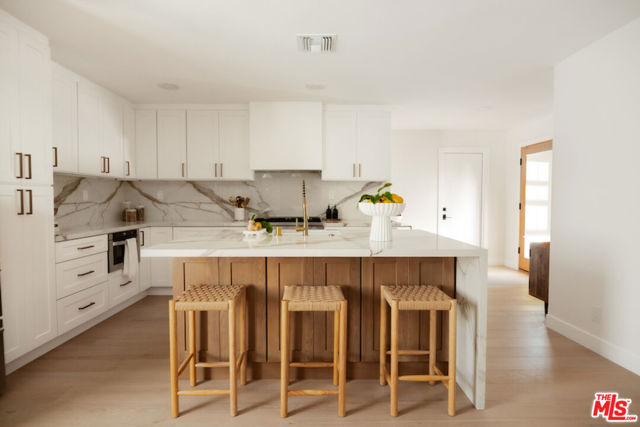 Welcome to prime Granada Hills! This reimagined 3BR + 2BA, approximately 1,800 sq ft, California Ranch has been thoughtfully transformed into a modern showpiece, blending timeless charm with today's most sought-after upgrades. Inside, the open-concept design creates effortless flow for both entertaining and everyday living. At the heart of the home, the chef's kitchen showcases sleek porcelain counters, a waterfall island, a full-height backsplash, and premium stainless-steel appliances, including Forno professional range, dishwasher, and French door refrigerator with dual freezer drawers. Wide plank engineered hardwood floors, recessed lighting, and a modern fireplace to bring warmth and style throughout. The highlight is a true primary suite that feels like a retreat, complete with direct backyard access, two closets (including a walk-in), and a spa-inspired ensuite bathroom. Outdoors, a spacious yard with citrus trees sets the stage for gatherings, play, or quiet evenings under the stars. Additional upgrades include a newer roof, electrical panel and water heater, fresh paint inside/out, recessed lighting, smooth ceilings, refreshed entry, and a beautifully finished garage (could be a rec room, office, gym, or even bedroom) that adds versatile living space. All of this in a prime location, just minutes from award-winning Granada Hills Charter schools, Knollwood Golf Course, Aliso Canyon, O'Melveny Park, and shopping at The Vineyards at Porter Ranch. Conveniently located near the 5, 118, and 405 freeways, you'll enjoy quick access to Burbank, Downtown LA, and the Westside. Every detail of this home has been carefully curated, making it a true turnkey property ready to begin its next chapter. Interior design by - S and S Design.