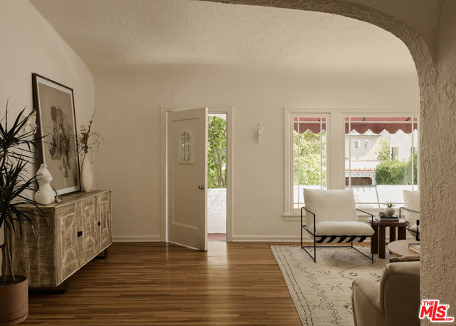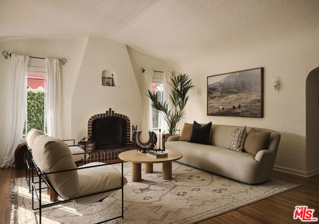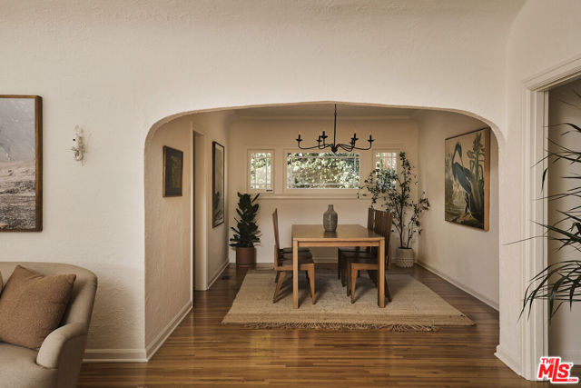Nestled on a serene street and embraced by lush landscaping and mature trees, this enchanting Adams Hill Spanish invites you to slow down and savor its timeless beauty. A storybook front patio leads into a sun-dappled living room where original windows, coved ceilings, and a terra cotta tile-framed fireplace create a space that feels both soulful and warm. Gleaming wood floors flow throughout, carrying the spirit of the home's history from room to room. A graceful archway opens to the dining room and onward to the kitchen, where daffodil-yellow tile edged in ebony nods to the artistry of its era. Updated appliances provide modern ease, while the charming breakfast nook, wrapped in bay windows, offers a dreamy spot to sip morning coffee, framed by a cascade of fuchsia bougainvillea just outside. Two spacious bedrooms provide a restful retreat, complemented by a full bath adorned with original tile and built-ins that speak to the home's enduring character. Outside, the private backyard unfolds like a hidden garden, with a flat, gated patio surrounded by lush greenery and native plantings; an ideal setting for gatherings and a great place to unwind. Detached garage with long driveway completes the property. Set in the beloved College Streets of Adams Hill, this rare offering is perfectly sited near all the best local hot spots such as Little Ripper, Capri, Dunsmoore, as well as local neighborhood favorites like Kafn Coffee, the beloved Adams Square Mini Park, Palmer Park, Arts Bakery and more. A rare chance to claim a slice of Adams Hill charm where every detail is already in place.
