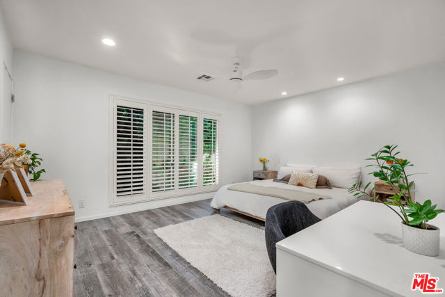 Welcome to this beautifully updated 2-bed, 2-bath Town home in the heart of Sherman Oaks! This propety has been pre-inspected, is move in ready & perfect for relocation with designer furniture included. A great S. of the Blvd location. Private entrance & patio tucked behind gated & lush landscaping. This bright two-story home offers a spacious outdoor patio, perfect for entertaining. Inside, you'll find wood plank porcelain tile flooring & plantation shutters throughout the open-concept first floor. The living room features a wall of windows with views of your private outdoor space, while a cozy nook under the stairs can be customized for storage, a pet area, or a mini play space. Recessed lighting & a stylish modern updated bathroom downstairs with custom storage cabinets. The formal dining area flows seamlessly into a fully remodeled kitchen with quartz countertops, custom cabinetry, a glass tile backsplash & top-of-the-line appliances including a GE stove, microwave/convection oven & Bosch dishwasher. A built-in laundry closet, great storage & character complete the first floor. Upstairs, the spacious primary bedroom hosts large picture windows with generous custom & cedar lined closets with shelving to add more space. Both 2nd floor bedrooms have ample closet space with custom-mirror sliding doors. The updated bathroom features a stunning deep slipper tub & a separate shower perfect for unwinding. New water heater & HVAC recently installed for maximum efficiency, comfort & peace of mind. Can be sold with some furnishings. BONUS: Extra attic storage, updated plumbing, HOA ($600/month), and a brand-new renovated community pool! Move-in ready & close to everything, dining, shopping with easy freeway access.