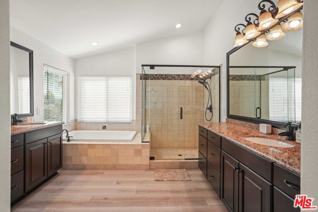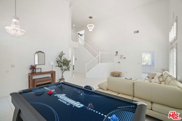 Welcome to 28412 Rock Canyon Drive, a beautifully designed 5-bedroom, 3-bathroom home offering 3,182 square feet of spacious living on a 6,647 square foot lot in one of Santa Clarita's most desirable neighborhoods. This residence seamlessly blends elegance, functionality, and energy efficiency featuring solar panels, a large side yard ideal for RV or boat parking, and a layout perfectly suited for modern family living. As you enter, you're welcomed by soaring ceilings and an abundance of natural light that fill the open-concept formal living and dining areas, creating an inviting and airy atmosphere. The thoughtful floor plan flows effortlessly into the heart of the home a ~ spacious kitchen that overlooks the family room. Here, you'll find ample cabinetry, generous counter space, and a layout designed for both everyday living and entertaining. The adjoining family room features a cozy fireplace and direct access to the backyard, making it the perfect space to gather with loved ones or unwind after a long day. Downstairs, a full bedroom and bathroom offer versatility for guests, in-laws, or a private home office. Upstairs, the expansive primary suite provides a serene retreat complete with a large ensuite bathroom featuring dual vanities, a soaking tub, separate shower, and a walk-in closet. Three additional bedrooms upstairs offer ample space for family, a home gym, or creative workspace, while the open hallway and landing maintain the home's bright and open feel. Step outside to a private backyard designed for relaxation and outdoor enjoyment. The spacious patio is perfect for barbecues, family gatherings, or simply soaking up the Santa Clarita sunshine. The large side yard offers plenty of room for RV or boat parking, adding a rare and valuable feature to this already impressive property. With a 2-car attached garage, low-maintenance landscaping, and solar panels, this home combines practicality and comfort with significant long-term savings. Ideally located in a peaceful and family-friendly community, this home is just minutes from top-rated schools, parks, shopping, dining, and freeway access. 28412 Rock Canyon Drive embodies the perfect balance of style, functionality, and convenience offering the space, comfort, and energy efficiency today's homeowners are looking for.
