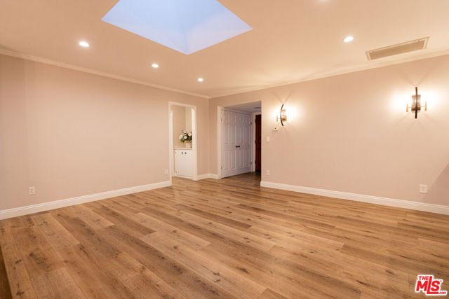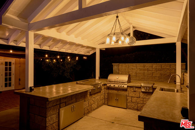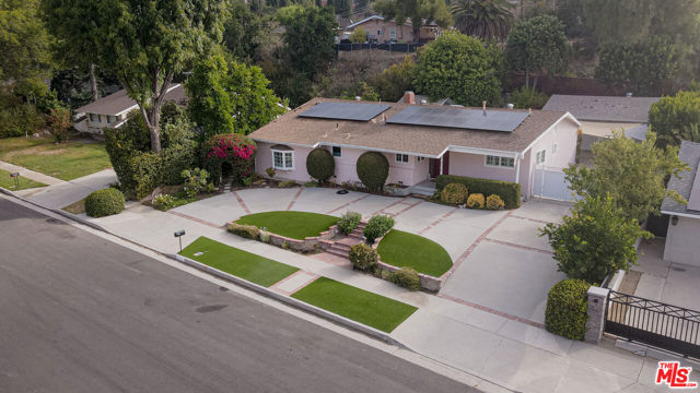 Welcome to 8510 Capistrano Ave a beautifully updated four-bedroom home tucked away in one of West Hills' most desirable neighborhoods, known for its tree-lined streets, great schools, and friendly community atmosphere. Step through the front door and feel the natural light immediately fill the space. The main living room features elegant new wood-style floors, a large skylight, and a cozy dual gas-and-wood fireplace. Its classic wood-framed doors with multiple square glass windows and matching side panels let in soft light and open directly to the backyard, giving the room a bright, inviting, and timeless feel. Just off the entry, the first bedroom makes an ideal home office or guest room, freshly painted and full of natural light. The modern kitchen sits at the heart of the home with sleek white cabinetry, a professional six-burner range with dual ovens, stylish backsplash, dishwasher, and a large refrigerator. Beyond the kitchen, a second spacious living or dining area with tile floors, bright lighting, and another set of glass doors to the backyard offers the perfect space for family dinners or entertaining. To the left of the main living area, a hallway leads to two additional bedrooms and a beautifully updated full bath, all freshly painted in soft gray tones with plantation shutters and new finishes. At the back of the home, the primary suite is impressively large a true retreat with generous space for a full sitting area or reading nook, multiple closets, and its own private access to the backyard. Step outside to a resort-style backyard designed for comfort and entertaining. Enjoy a recently renovated pool, a Jacuzzi spa, and a fully covered outdoor kitchen with a stove, barbecue, refrigerator, and large countertop perfect for year-round gatherings. Just steps away, a beautifully finished standalone sauna offers a private, spa-like escape. The two-car garage includes a separate enclosed bonus room with its own private entrance, ideal for a workshop, studio, or hobby space. The yard also features fruit trees pomegranate, orange, and grapefruit providing fresh fruit and natural beauty throughout the seasons. The home is equipped with solar panels, adding energy efficiency and helping reduce utility costs. Bright, spacious, and full of character, this West Hills home perfectly combines timeless design, modern comfort, and resort-style outdoor living offering the best of the California lifestyle in one of the Valley's most sought-after communities.