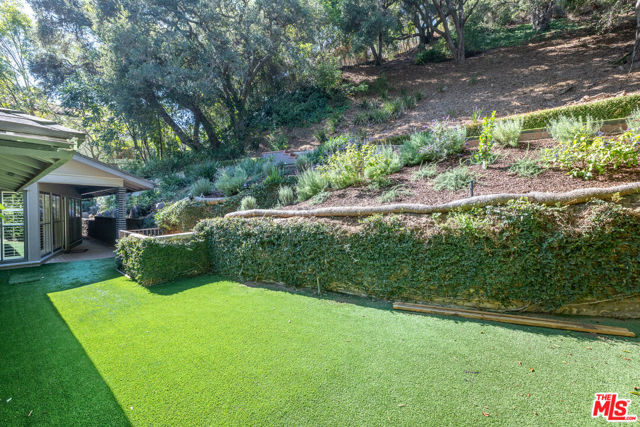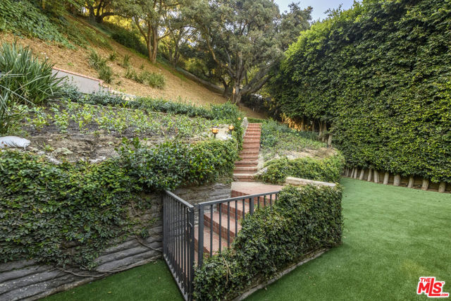 Just minutes from Sunset Blvd, this fully gated, single-story 3 bed/2 bath cozy home offers exceptional privacy and style. The tranquil yard features lush landscaping, a beautiful fountain, and multiple outdoor seating areas, creating a seamless indoor-outdoor lifestyle. The living room centers around a grand fireplace and flows seamlessly into a formal dining area. The updated kitchen includes modern amenities and a cozy breakfast nook. One guest bedroom is perfectly suited for visitors or a home office, while another bedroom and the primary suite open onto a spacious side yard through French doors. The primary suite also features an ensuite bath and a serene ambiance. Set on a sprawling half-acre lot, the property provides ample space for expansion or future development, offering flexibility to enhance and personalize the home. Enjoy the feeling of being on a retreat every day, with easy access to The Glen Centre and the Golden Triangle of Beverly Hills.