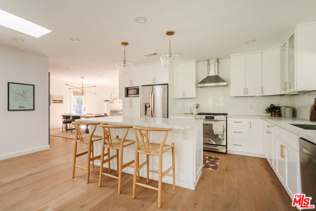 Welcome home to this Culver City gem! Extensively renovated in 2018, the 3 bedroom 2 bathroom home with an additional 300 sq ft of living space from the finished garage has every detail covered. The kitchen features quartz countertops, LG appliances, and soft-close wood cabinetry with storage, an island bar, and large pantry closet. The primary suite features a freshly styled bathroom and a walk-in closet. There are two additional bright bedrooms with a stacked washer/dryer and a custom-designed second full bathroom between them. A bright and airy home that includes a dining area and two living spaces, you'll delight in two outdoor living areas! French doors off the family room lead to a manicured backyard complete with turf and smart irrigation. The former garage was transformed into an air conditioned bonus space for a gym, office, or guests with white oak floors, recessed lighting, and a massive storage closet. A side yard storage area remains for bikes and garden supplies. Close to Farragut Elementary and other award-winning Culver City schools.