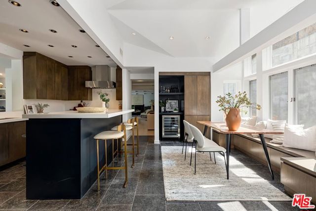 Elegant California Bungalow with Exceptional Design and Versatility. This beautifully updated home combines classic charm with modern sophistication. Light-filled and airy, the home features dramatic vaulted, beamed ceilings, three fireplaces, and stunning oak flooring throughout. The main residence includes 2 spacious bedrooms and 3 bathrooms, complemented by two attached guest suites each with their own private bath offering a total of 4 bedrooms and 4 1/2 bathrooms. The expansive primary suite includes a cozy sitting area, creating a serene retreat. A chef's dream kitchen boasts Sub-Zero and Viking appliances, Caesarstone countertops, custom cabinetry, a generous center island with refrigerated beverage drawers, and a built-in banquette. Adjacent to the kitchen, the media room/den with vaulted ceilings provides a perfect space for relaxation or entertaining. With a unique and flexible layout, the guest suites are ideal for use as home offices, creative studios, a gym, or private quarters for visitors. The property is fully walled and gated, ensuring complete privacy and security. Nestled near scenic Franklin Canyon Park, with its duck pond and hiking trails, this home offers an exceptional lifestyle in a tranquil yet convenient setting. Truly beautiful living.