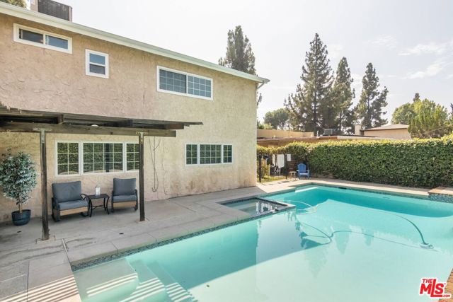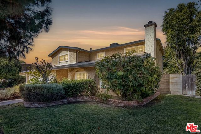 First time on the market in almost 25 years! This classic ready-to-move-in, over 2,900 sq ft, 5 bedroom, Northridge home has been highly upgraded and lovingly maintained by long term owners who raised their family here. A 3-car garage and expansive driveway introduces the shaded front porch which opens to a formal entry. A large living room anchored by a keyhole fireplace is adjacent to the formal dining room and leads to the recently upgraded light and bright remodeled kitchen with stainless appliances, quartz counters and breakfast room which opens to the family room. Sliding french door opens to a very private pergola shaded outdoor living/dining patio, grassy yard and newly refreshed full sized swimmer's pool/spa. An additional side yard provides options for pets and play areas.The interior bedroom layout offers a downstairs guest suite currently used as a home office. Upstairs are 4 bedrooms including a large primary suite with walk-in closet and en suite bath. This is truly the ideal home, close to all locations. Call today to arrange a private showing and to hear more about this amazing opportunity to call this your new home. Note: Photos have been virtually staged.