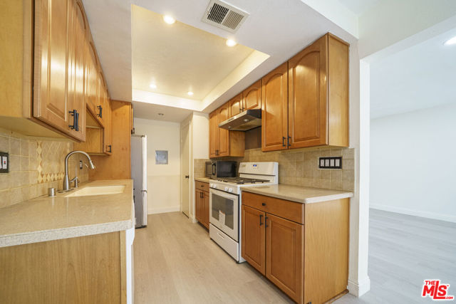 Welcome to Cerritos Villas. This private end unit feels warm and inviting from the moment you walk in. The first floor features a comfortable living room and a galley kitchen with new appliances, a pantry, and a sliding door that opens to your own covered patio.Fresh paint and luxury vinyl flooring run throughout the home, tying the space together from the downstairs living areas up the stairs and into the second-floor bedrooms and bathroom. Recessed lighting and generous windows keep everything bright and open. You'll also find dual-paned windows, mirrored closet doors, and plenty of green space in the community for walking your dog.Parking is convenient with a one-car garage plus an additional spot right next to the patio. The complex offers multiple pools and a clubhouse, and you're close to a wide range of restaurants and shopping, including Cerritos Towne Center and Los Cerritos Center.