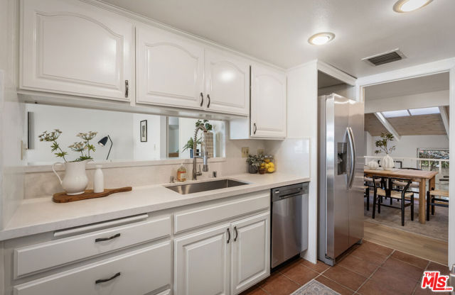 **CONVERTIBLE DEN SUITABLE FOR 3RD BEDROOM** 2 bed + den + 3 bath + 2 car garage w/direct access + private patio!!! Located in the highly sought-after Studio Village community in Studio City, this beautifully updated townhouse features a two car garage with direct access, soaring ceilings, new flooring, and a stone fireplace. The remodeled kitchen comes with new stainless steel appliances, opens to a cozy breakfast nook and a flexible den which is perfect for a bedroom conversion, an office, or a creative space. Formal dining room with a built-in bar makes entertaining easy. Skylights, abundant natural light, central heat/air, and seamless indoor-outdoor living with your own private enclosed patio. Resort-style amenities include six pools, five spas, two tennis courts, a club house, and lush landscaping. Walking distance to Colfax and Ventura Blvd's shops, cafes, and restaurants, as well as major studios, top-rated schools, and freeway access. HOA covers water, internet, basic cable (with Showtime), and earthquake insurance. Fireplace is decorative;.