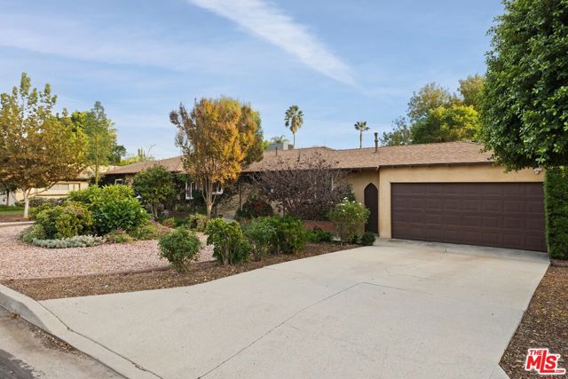 Welcome to your California oasis -- a single-story ranch home on an expansive 16,000 sq ft lot where everyday living feels like a retreat. Private, sun-drenched, and surrounded by lush greenery, this 4 BD + 3 BA property blends comfort, versatility, and the kind of indoor-outdoor flow that defines life here. A thoughtful, permitted addition connects and functions like a second primary suite -- complete with its own entrance and kitchenette (refrigerator + sink + capped gas line). The Sellers have lived in this property as one house, but it could function as a 3+2 house and a 1+1 ADU. Ideal for multigenerational living, guests, or a luxurious primary retreat separate from the main sleeping wing. Two true primary-style suites give you the flexibility to choose how you want to live. Inside, the open-concept kitchen and dining area is perfect for gathering, while dual-sink vanities in two bathrooms and a warm, intuitive layout make daily living feel effortless. Dual-zone HVAC and both tankless + standard water heaters offer efficiency and comfort throughout the home. Outdoors, the property flourishes with mature avocado, fig, and multiple citrus trees plus tropical flowering plants -- a lush backdrop for relaxation. The large 10' x 20' storage structure provides excellent space for tools, toys, or hobbies, and there's a two-car garage, parking for up to 10 cars -- including room for an RV. Spend sunny days by the sparkling saltwater pool + spa, gather under the covered patio, and imagine the pool house transformed into a studio, gym, or creative space. Recently re-roofed, this 1948 home is a rare combination of space, possibility, and classic California ease -- ready for its next chapter.