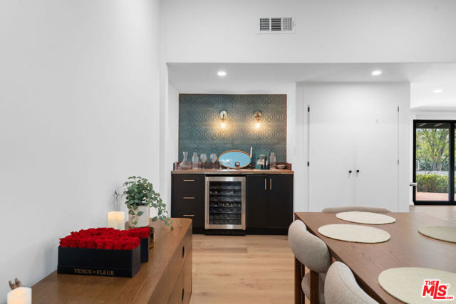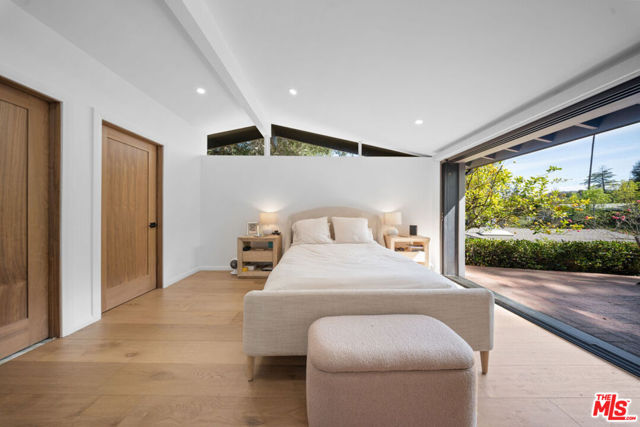 Set in the desirable neighborhood of Woodland Hills, this exquisite 3-bedroom, 2-bathroom home is a true blend of style and functionality. Positioned on a peaceful hillside, it offers breathtaking views and is filled with natural light, thanks to expansive windows and floor-to-ceiling pocket doors. The home features a mix of timeless design and modern updates, including custom wood finishes, walnut doors, a white oak garage door, oak flooring, a flagstone fireplace, and handcrafted cabinetry. The open layout creates a seamless flow between the indoors and outdoors, where you can enjoy tranquil water features, a mature landscape, and stunning sunrise views. High ceilings and spacious rooms make the home perfect for both family gatherings and entertaining, all enhanced by a built-in sound system. The three bedrooms offer plenty of space and privacy, with the primary suite offering its own walk-in closet and bath. Nestled on a quiet street, this property combines privacy with convenience, just minutes from Ventura Blvd, Topanga Canyon Mall, cafes, and top-rated schools.