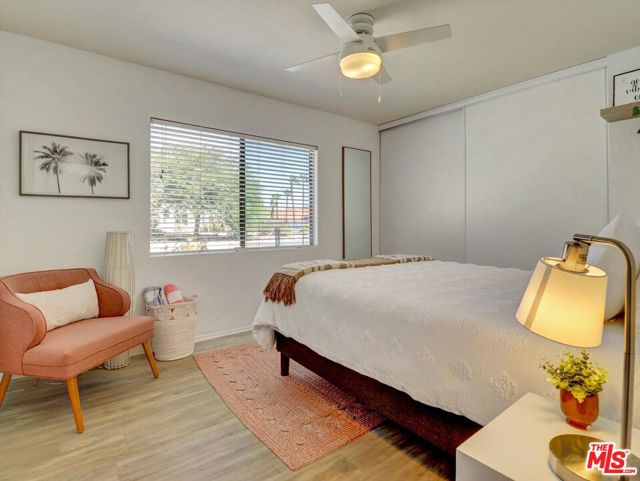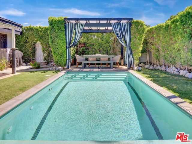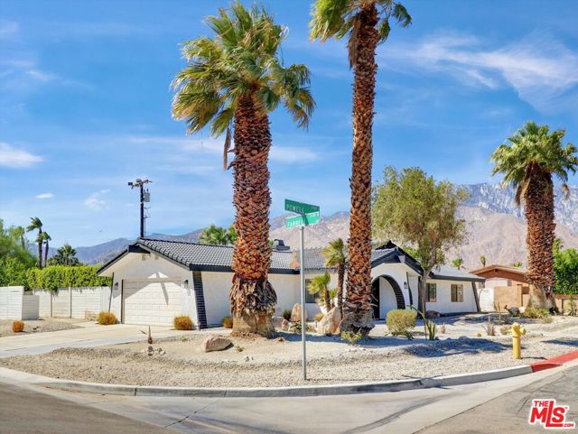 This recently renovated Spanish modern residence is perfectly located in the heart of Palm Springs, nestled in the peaceful Desert Park Estates neighborhood. The home has been carefully maintained and thoughtfully upgraded. Its tranquil, resort-style yard ensures complete privacy, featuring an updated pool with a sun deck, concealed water features, and a custom pergola, all framed by stunning views of the San Jacinto mountains. Inside, the chef's kitchen is a culinary delight, boasting a 48-inch Wolf commercial-grade gas range with six burners, a griddle, double ovens, and a high-quality hood. It also includes a spacious side-by-side refrigerator and freezer, enhanced by custom cabinetry and countertops. The generous open floor plan is ideal for both entertaining and relaxation, showcasing high ceilings, elegant high-gloss Spanish tiles, and a dedicated space perfect for a home office or cozy reading nook. The expansive primary bedroom offers direct access to the pool and features a large walk-in closet. The luxurious primary bathroom includes a walk-in shower and custom cabinetry and fixtures that impress. Additional features include a new A/C system installed in 2021, an efficient evaporative cooler added in 2022 to help lower energy costs, and a new hot water heater. With five ceiling fans throughout, comfort is assured. Situated on a spacious corner lot, away from the bustle of Farrell Dr., this property is a must-see.