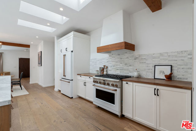 Refined Modern Spanish Retreat in the Heart of Los Angeles! This exquisite 3-bedroom, 2.5-bath residence captures the essence of timeless Spanish architecture, reimagined with contemporary sophistication. Behind a hand-carved wooden door awaits an expansive open-concept layout created for effortless living and entertaining. The chef's kitchen is a true showpiece, featuring Cafe appliances, a dramatic 5'x9' Carrara marble island and a large walk-in pantry. The adjoining great room opens seamlessly to a lush, private, generously sized backyard, an inviting setting for outdoor dining and gatherings. The primary suite offers a serene escape, appointed bath with mosaic Nero Marquina marble floors, a freestanding soaking tub, a skylit walk-in shower and French doors to the patio. Two additional bedrooms, a stylish hall bath and powder room complete the carefully planned interior. A detached Guesthouse with kitchen, bedroom/office area and bath provides extra space for living and studio creativity. Reimagined with newer systems, Nest thermostat, EV charger and pre-wiring for security cameras, this residence harmonizes modern comfort with ageless elegance. Including a well-designed spacious storage shed at the back of the property. Discover the perfect blend of usability and functionality crafted from durable materials. This shed offers storage solutions with the convenience of organization. Ideally situated near renowned dining, outstanding shopping and just a short drive to the beaches and freeways. Create your California lifestyle. 1280 S Sycamore Avenue a captivating blend of beauty, craftsmanship and luxury living in one of Los Angeles' most desirable neighborhoods. Some photos are virtually staged.
