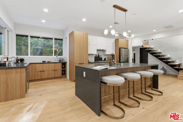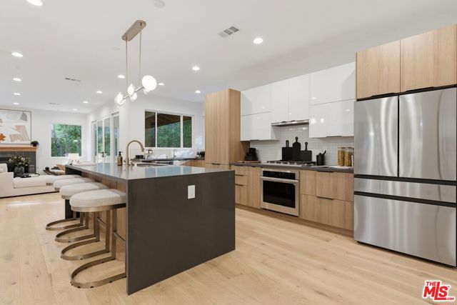 Welcome! Beautifully reimagined two-story retreat nestled on a private, tree-lined lot in the heart of Encino's coveted South of the Boulevard enclave. This newly remodeled 4-bedroom, 3-bathroom home spans nearly 2,400 sq ft of refined living space on an expansive 17,500+ sq ft lot.Step inside to discover interiors featuring wide-plank flooring and sleek designer finishes throughout. The open-concept living and dining areas flow seamlessly into a gourmet chef's kitchen with custom cabinetry, stone countertops, stainless steel appliances, and an inviting breakfast nook nestled in the lush grounds.Retreat to the luxurious primary suite with spa-inspired bath, walk-in closet, and direct access to the serene backyardperfect for indoor-outdoor living. Three additional bedrooms offer flexible space for family, guests, or home office needs.Set behind a long private driveway, this home offers exceptional privacy and tranquility with mature landscaping, a spacious patio for al fresco dining, and plenty of room for a future pool or ADU.Located within the highly rated Lanai Road Elementary School district and minutes from fine dining, shops, and hiking trails, this move-in-ready residence combines timeless design with modern luxury.