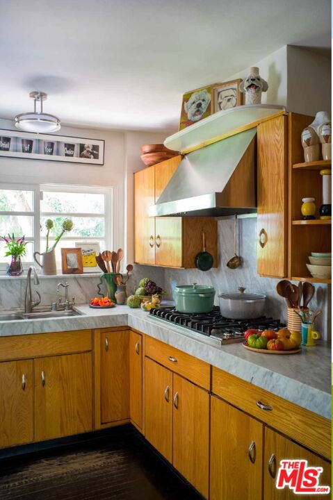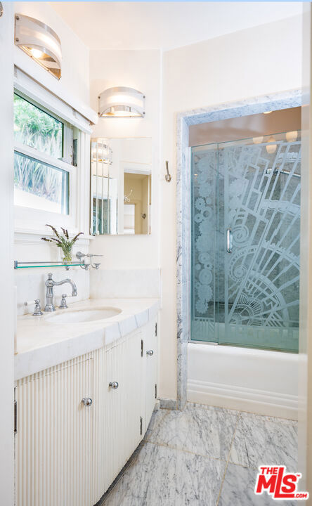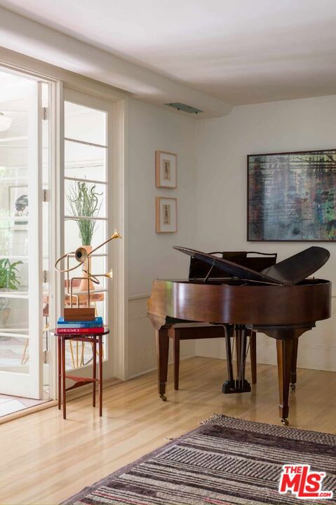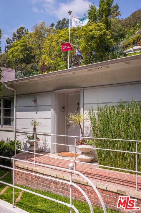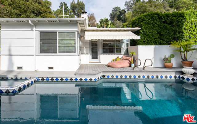 Villa Lorelei, a pristine Art Deco sanctuary in the heart of the storied Outpost Estates, blends the sculptural elegance of Streamline Modern architecture with the warmth and ease of true California living. This 5 bedroom 5 bathroom home is set behind lush landscaping and a private courtyard. Bathed in natural light and framed by the tranquil greenery that defines this historic enclave, this property feels both quietly serene and refined. Inside, a sun-filled living room anchored by a classic period fireplace sets an inviting, sophisticated, and timeless tone. The main house flows with an easy dialogue between comfort and entertaining: the chef's kitchen opens to a formal dining room and an airy solarium with French doors extending directly to the pool terrace. Architectural details recall the neighborhood's Old Hollywood heritage, with modern upgrades including an integrated sound system and a whole-house Oxygen Ozone filtration system. The primary suite serves as a peaceful retreat, complete with a spa-like bath and calming views of the gardens and pool. Outside, a gas fireplace, built-in refrigerator, and multiple intimate dining and lounge areas create a true extension of the home perfect for morning coffee, golden-hour gatherings, or quiet evenings under the stars. The separate Piet Mondrian inspired studio guest suite offers a bathroom and kitchenette ideal for guests, creative pursuits, or a private office removed from the main residence. Additional amenities include three independent temperature zones, two-car garage, site-specific sculptures, and proximity to the Sunset Strip and Runyon Canyon, along with the architectural charm that defines this iconic neighborhood. Villa Lorelei is a rare opportunity: a preserved architectural gem that marries vintage character with modern comfort, capturing the romance, privacy, and timeless appeal that make Outpost Estates one of the most coveted pockets of the Hollywood Hills.