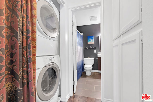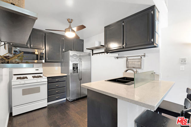 Charming, stylish, and packed with personality, this updated studio condo in a boutique 8-unit building is the ultimate first-place-to-call-your-own. Vaulted ceilings with exposed beams and a cozy brick gas fireplace bring major character while keeping the space bright and inviting. Movie nights are covered with the included 50" mounted TV, and mornings are easy at the breakfast bar. A spacious bonus loft adds serious versatility, perfect for a home office, guest hangout, or creative zone. Modern upgrades include quartz countertops and in-unit laundry, plus a huge win: *two rare side-by-side parking spaces in a secure, gated garage. Two private storage cabinets make city living even easier. The building offers secure entry, intercom, cameras, locked mailboxes, and guest parking. HOA dues cover water, trash, sewer, *earthquake insurance, landscaping, and professional management. Prime location near the 101 and 170 freeways, with Gelson's, Starbucks, and local favorites just a short walk away. A true hidden gem and an ideal launchpad into homeownership.