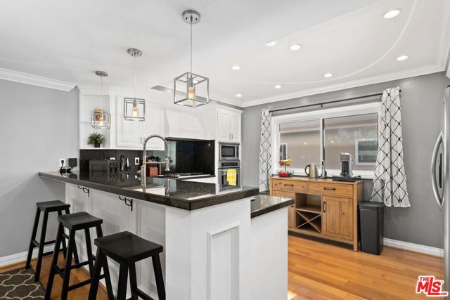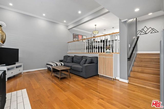 This light-filled tri-level townhouse is ideally located in the heart of Marina del Rey and offers 3 bedrooms and 2.5 bathrooms with a thoughtfully designed, modern open layout. Beautiful hardwood floors run throughout most of the home, enhancing the bright and airy interiors and creating a warm, cohesive feel across all living spaces. The dramatic living room showcases soaring high ceilings and abundant natural light, making it an inviting space for both everyday living and entertaining guests. The chef's kitchen is well-appointed with granite countertops, stainless steel appliances, generous cabinetry, and ample prep space, perfectly suited for cooking and gathering. Adjacent to the kitchen, the dining area overlooks the living room below, adding architectural interest and an ideal setting for hosting dinners or casual meals. Contemporary remodeled bathrooms offer sleek finishes and a spa-like ambiance, providing comfort and style throughout the home. Additional highlights include a private two-car garage with direct entry into the unit, offering both convenience and security. This exceptional residence is perfectly positioned near Marina del Rey's renowned dining, shopping, beaches, and outdoor recreation, delivering the best of coastal living with modern comfort and effortless style.