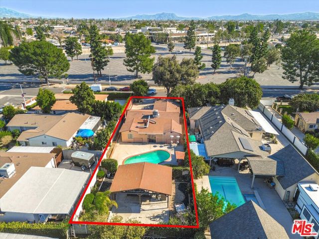 Located in a desirable area of Panorama City, this property sits on an expansive 8,405 sq ft lot and offers approximately 1,720 sq ft of living space, featuring 4 bedrooms and 2 bathrooms. The home includes a spacious living room, dining area adjacent to the kitchen, and a den, providing flexible living spaces with plenty of potential to customize. This is a great opportunity to update and transform the home into your dream space. The property features a good-size front yard and a large backyard ideal for relaxing and entertaining, complete with a pool and a private sectioned-off area in the backyard showcasing a large wooden gazebo with lighting and ample space for a bar and seating. This separate area offers excellent potential for an ADU or future expansion, creating opportunities for extended family living or rental income. Additional highlights include a new roof, new HVAC system, new garage door, attached 2 garage, large driveway, plenty of street parking, and great overall bones. Conveniently located near shopping, dining, and major freeways, this home presents a fantastic opportunity in a highly sought-after neighborhood. A must see!