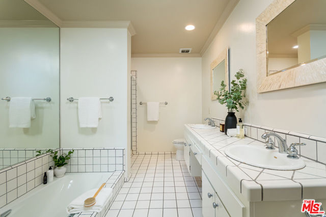 *** Check Agent remarks or call for Seller offered incentive!** Experience sophisticated living in this nearly 1,700 sq. ft. 2-bedroom, 2-bathroom sanctuary at the prestigious Fountain View, nestled in the vibrant heart of West Hollywood's coveted 90069. This front-facing corner unit, sharing only one wall, boasts stunning city views and floods of natural light, creating a bright and inviting atmosphere. The eat-in kitchen is a culinary dream, featuring gleaming granite countertops, a chic subway tile backsplash, and a brand-new stainless steel refrigerator. Flow effortlessly from the kitchen into the formal dining room, which leads to the sunken, expansive living room, complete with a cozy gas fireplace and plumbing ready for a wet bar, perfect for entertaining or unwinding in style. The oversized primary suite is a true retreat, offering an impressive walk-in closet, an additional wall of closets, and a spa-like en suite bathroom with a double vanity, a separate shower, and a luxurious soaking tub. The spacious second bedroom also features it's own walk-in closet, ensuring ample storage throughout. Elegant hardwood floors grace the main living areas, while plush new carpeting adds comfort to the bedrooms. High ceilings, crown molding, recessed lighting, plantation shutters, and side-by-side in-unit laundry further elevate the home's convenience and charm. Fountain View's resort-style amenities are unparalleled: bask by the sparkling pool, soak in one of two spas (including a covered option for year-round enjoyment), work out in the fully equipped fitness area, or enjoy friendly competition in the game room with billiards. Residents also benefit from a meeting room, guest parking, two deeded side-by-side parking spaces, and a generous private storage unit. In addition to all of the amenities, the HOA includes EQ insurance, water/trash and sewer. Located just steps from the famed Sunset Strip, you'll find yourself moments away from world-class dining at hotspots like the One Hotel and Sunset Tower Hotel, trendy eateries like Salty Girl, luxury shopping, and premier fitness centers like Equinox. This is your chance to embrace an elevated lifestyle in one of Los Angeles' most sought-after neighborhoods.