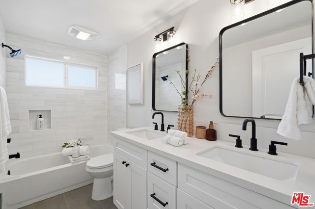 Welcome to this fully reimagined Huntington Beach residence, where modern coastal design meets everyday functionality in one of Orange County's most desirable beach communities. Thoughtfully renovated from top to bottom, this light-filled home showcases wide-plank flooring, an open-concept layout, and seamless indoor-outdoor flow ideal for both entertaining and daily living. The heart of the home is the designer kitchen, featuring crisp white shaker cabinetry, quartz countertops, a generous center island, stainless steel appliances, and elegant pendant lighting. The kitchen opens effortlessly to the living and dining areas, anchored by a custom tiled fireplace and expansive sliding glass doors leading to the private backyard. Outside, enjoy a low-maintenance, resort-style yard with modern concrete pavers, artificial turf, privacy fencing, and a dedicated fire-pit area perfect for entertaining or quiet evenings at home. The bathrooms are spa-inspired, highlighted by a freestanding soaking tub, walk-in glass shower, contemporary fixtures, and refined tile work. Additional upgrades include New High Efficiency AC and Heating, recessed LED lighting throughout, smooth ceilings, and a freshly finished garage with epoxy flooring. Ideally situated in Huntington Beach, this home offers convenient access to world-famous beaches, coastal trails, surf culture, shopping, dining, and top-rated schools, with easy connections to Pacific Coast Highway and nearby freeways. Enjoy the best of Southern California coastal living from morning beach walks to sunset evenings just minutes from your front door.