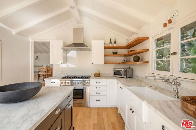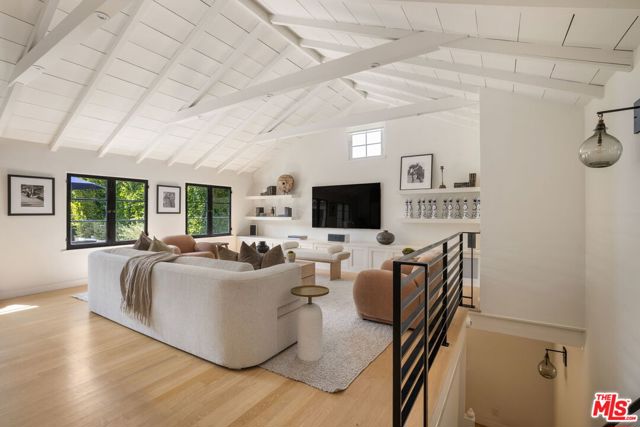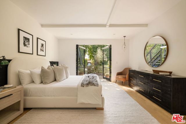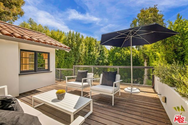 Tucked behind tall hedges and gates in prime West Hollywood West, this stunningly reimagined 3BD/3BA delivers the perfect blend of charm, comfort, and high design. Set at the back of the lot, the home features a gorgeous and spacious front garden with lush landscaping and room for a pool - your own private retreat just moments from the city's best dining, shopping, and nightlife. The elegant downstairs includes a serene primary suite with a beautifully appointed bath & walk-in closet. Also downstairs, a romantic library/game room, full bath, and secondary bedroom. Ascend the stairs to the upper level where sunlit vaulted beam ceilings create a loft-like vibe with generous living and dining spaces that flow effortlessly into a chef's kitchen outfitted with Sub-Zero and premium stainless appliances. A third bedroom with full bath currently used as a home office completes the upper level. Off the living room, a large wood deck creates the perfect outdoor lounge or dining area ideal for entertaining or relaxing. With thoughtfully curated finishes, seamless indoor-outdoor living, and a layout that adapts to modern life, this one-of-a-kind residence offers both tranquility and access all in the heart of WeHo. Unique opportunity to acquire this property with adjacent property (8923 Dorrington Ave).