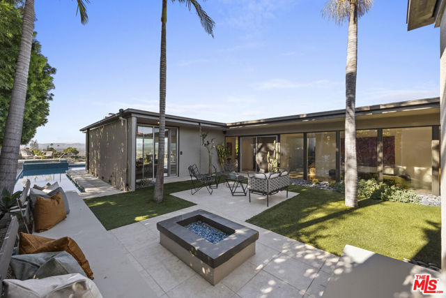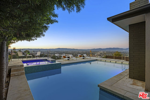 An architectural statement by acclaimed mid-century architect Paul Wuesthoff, this 1962 masterpiece is discreetly positioned at the end of a coveted Beverly Ridge cul-de-sac. Privately sited on over a quarter acre, the residence commands sweeping jetliner views and showcases the effortless glamour of true California modernism.Expansive walls of glass dissolve the boundary between interior and exterior, framing cinematic sunsets and lush terraced grounds. At the heart of the estate, a striking central courtyard introduces an extraordinary wraparound poolan architectural focal point that begins within the courtyard and continues along the residence into the backyard, creating a seamless indoor-outdoor living experience rarely found at this price point.Designed for refined entertaining and tranquil daily living alike, the home offers multiple outdoor vignettes, including elevated seating terraces and a generous lower-level flat pad adjoining a secondary primary suiteideal for guests, studio space, or private retreat.With rare usable hillside grounds, architectural pedigree, and effortless connectivity to Beverly Hills, the Westside, and the San Fernando Valley via Beverly Glen, this offering represents a timeless expression of privacy, design integrity, and elevated Los Angeles living.