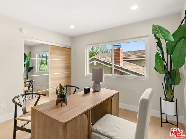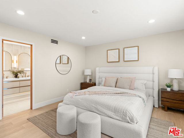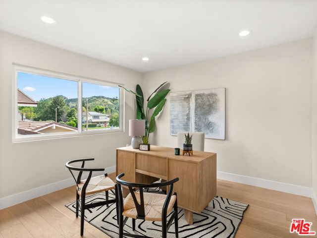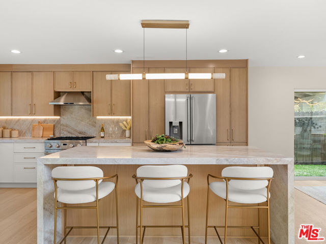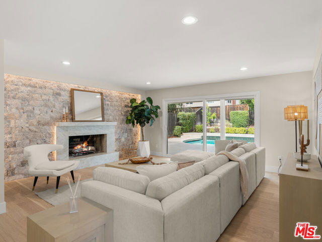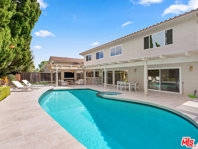 Completely reimagined and thoughtfully renovated, this stunning Westlake Village home blends modern luxury with timeless design. The residence features high end finishes throughout, including new engineered hardwood flooring and elegant indirect ambient lighting that creates a warm and sophisticated atmosphere. At the heart of the home is a designer chef's kitchen with custom cabinetry, quartzite natural stone countertops, and premium Thor appliances. All bathrooms have been fully remodeled with premium Italian porcelain tile, and major infrastructure upgrades include a brand new roof and upgrades to sewage and plumbing lines. The outdoor space is designed for true California living, showcasing a resurfaced pool with new plaster and tile along with a luxury patio finished in imported Italian tile and an outdoor entertainment area complete with a built in TV and fireplace.