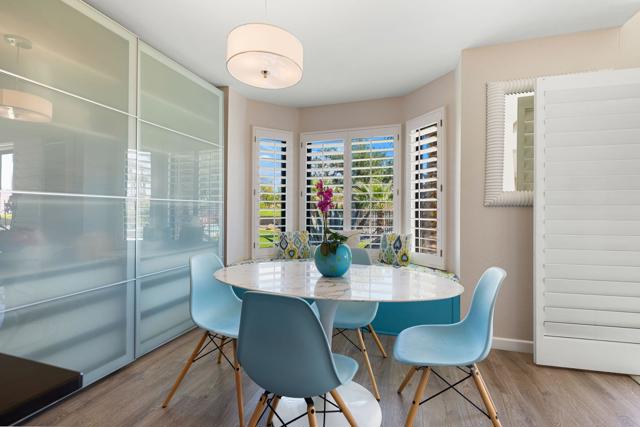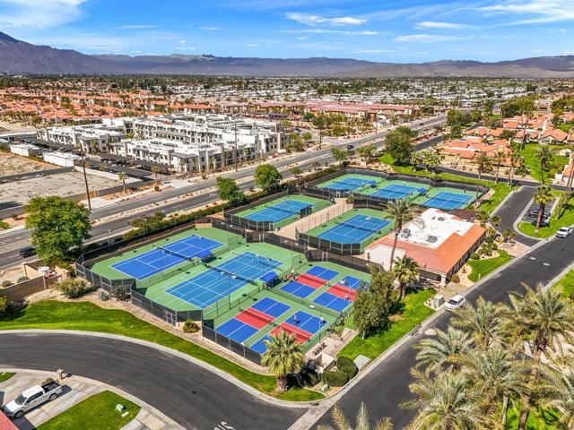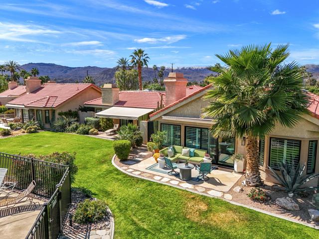 Welcome to Silver Sands RC, THE BEST RACQUET CLUB in the valley! 2 professional coaches onsite, instructional classes and special events. Prime location in Palm Desert, close to El Paseo shopping, adjacent to JW Marriott, across from Desert Willow Golf Resort where Palm Desert residents receive reduced rates. This home is unattached. 1992SF home has 3 bed/3 baths, 2 Patios, Private Courtyards plus an Atrium. Light and Bright decor, professionally decorated. Upgrades include kitchen cabinets, New Quartz countertops, Vinyl Plank flooring, natural wood look, throughout ,tile flooring in bathrooms. Breakfast nook in kitchen, bench seating around table. Fireplace has white Stack Stone reface. Enjoy mountains views from the extended back patio. Center Courtyard concrete and tiles refinished last year. New metal gates replaced for privacy. Stainless Appliances, Blue Star Range, New Refrigerator, Bosch DW, completes the Cooks Kitchen. On-suite bathrooms for each bedroom. Built in desk and storage cabinets in third bedroom for office. Plenty of storage primary bedroom has walk in closet, plus a wardrobe cabinet included with purchase.Community has a combination of Desert Landscape and matured shade trees, Green Grassy Greenbelts in the community areas. HOA includes, 8 lighted courts, Gym, 15 heated Pools and Spas. Maintenance and replacement of Roofs, Stucco siding, Exterior Painting, community Pest service, Front and Back Landscape maintenance and Cable-Internet is provided by the HOA. Clubhouse activities and Seasonal events are planned by the Social Committee. 2 car garage, new storage cabinets, work bench and storage rack above. The inside laundry room, utility sink, storage. Water softener tank in garage, serviced by Culligan Water.Air conditioner, Furnace, Hot Water Tank, purchased new in 2018-2019. Don't miss this RARE OPPRTUNITY TO OWN the largest floor C plan in a condo community. Secure gated community .Call first to make an appointment. Seller is a Real Estate Agent and a local Interior Designer.