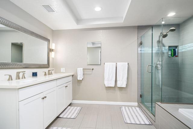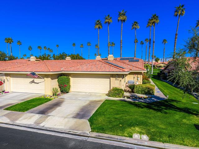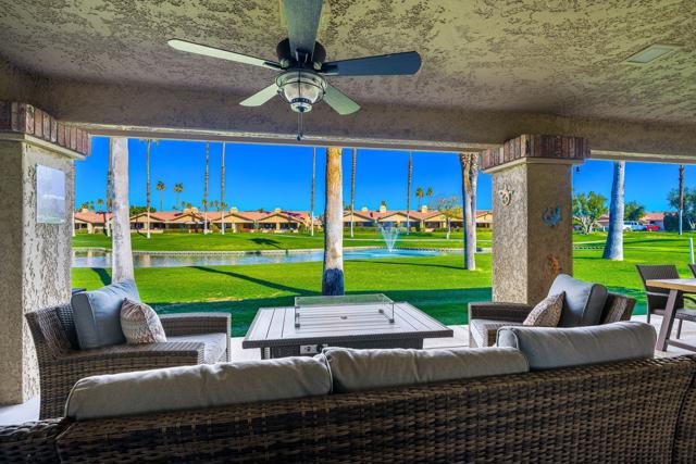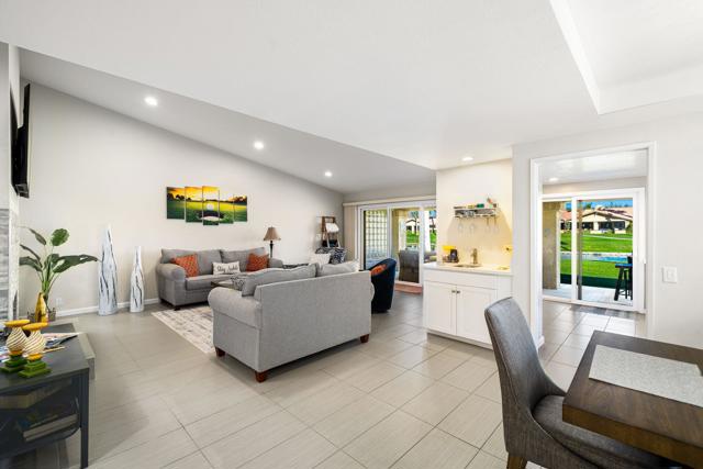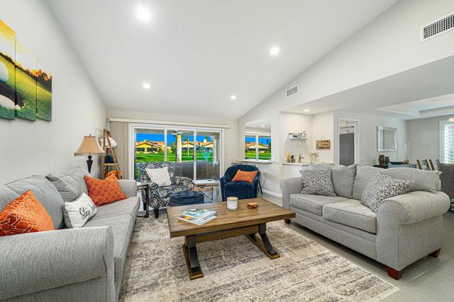 Experience resort-style living in this beautifully updated 3-bedroom, 2-bath condo, ideally located in the heart of Chaparral Country Club.Step inside to a bright and welcoming interior, where soaring pitched ceilings and an open-concept layout create a spacious, sophisticated atmosphere--perfect for both entertaining and everyday living. Just off the entry, a unique central atrium fills the space with natural light, adding a tranquil and stylish focal point.The fully remodeled kitchen boasts modern finishes, sleek stainless steel appliances, and a custom bartop that seamlessly connects to the living area--ideal for casual dining and social gatherings.Step outside to your private covered patio overlooking the scenic 8th hole--a par 3 that plays across water. This north-facing patio offers panoramic golf course views and provides the perfect mix of shade, comfort, and natural beauty from morning through evening.Inside, elegant tile flooring runs throughout the main living areas, while the bedrooms offer soft carpeting for added comfort. Each bedroom features mirrored closet doors and built-in storage, with one guest room offering direct access to the atrium and a private ensuite--ideal for guests or a home office.The primary suite is thoughtfully tucked away at the end of the hallway for maximum privacy and includes a generous walk-in closet and a spa-inspired bathroom. Both bathrooms have been tastefully renovated with contemporary vanities, designer lighting, glass-enclosed showers, and elevated fixtures. The primary bath adds a touch of indulgence with a luxurious jetted soaking tub--your own personal retreat.Tucked away from busy streets yet just a short stroll to the clubhouse and one of the many community pools and spas, this home strikes the perfect balance of peace and convenience. This home also features owned solar, providing energy efficiency and long-term savings--an added bonus to your desert lifestyle.Whether you're seeking a full-time residence, a seasonal escape, or a ready-to-go rental, this move-in-ready gem checks every box. Come experience the very best of desert living in one of Palm Desert's most desirable golf communities.