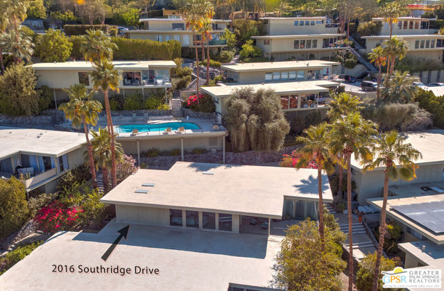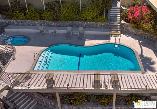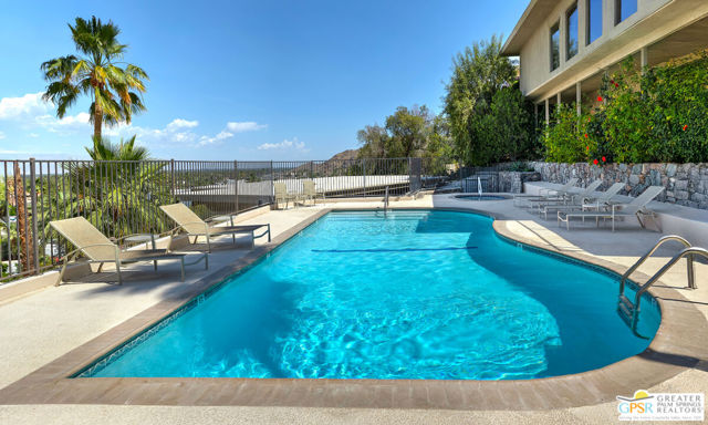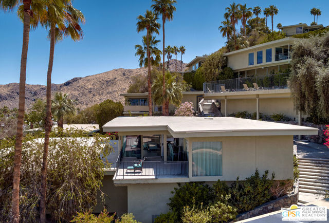 There are few places where great possibility, historic architecture and unparalleled views converge to form a very rare and seldom realized opportunity. This is that moment, where in 1967 architects Harold Carlson and Leroy Rose carved their legacies into this iconic hill of unique homes and aptly named it "Rimcrest." Where the panorama of Palm Springs and its mountainous horizons and painted skies greet you every day, and its sparkle of lights every night. Two pools, three spas, native rock landscaping, shaded pathways and surrounding hiking trails frame this sensory experience. This 2 bedroom, 2 bath cliffside light-filled sanctuary features-floor-to ceiling windows providing unparalleled high views over the valley. Watch the mountains change in light and color from your expansive patio. Or witness a giant pink supermoon rise from the northeast hills from your perch up high. Just a few steps to the pool and spa, and it's the perfect sumptuous retreat. This is that moment to live here...an open floor plan canvas where you turn mid-century modern into this-century modern and make it yours. And for the few who have had the chance to live here, it's music, light and love like no other place in the Coachella Valley. Historic. Iconic. Remarkable Rimcrest. It's a one-of-a-kind moment for a one-of-a-kind home.