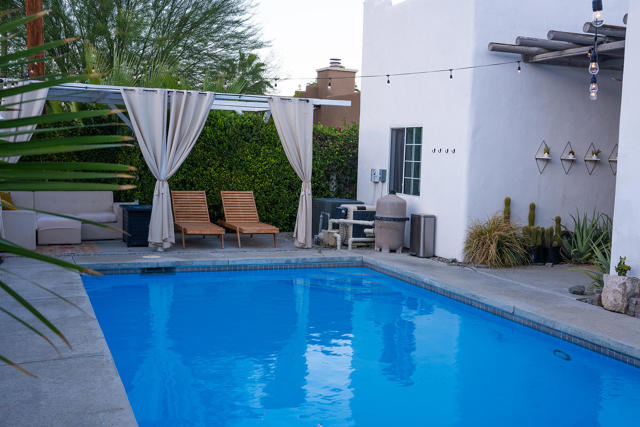 Nestled in the coveted Historic La Quinta Cove, this stunning Santa Fe-style home offers the perfect blend of sophisticated design and California desert lifestyle. This walkable, dog-friendly neighborhood is renowned for its tranquil ambiance, scenic hiking trails, captivating mountain vistas, and vibrant arts community.Impeccably Updated InteriorStep inside to discover a thoughtfully designed living space that truly shows like a model home. The gourmet kitchen showcases gleaming quartz countertops, premium stainless steel appliances, and designer fixtures that elevate everyday living. Soaring 10-foot ceilings create an airy, expansive atmosphere, while curated light fixtures add sophisticated ambiance throughout. The striking fireplace anchors the living room as a stunning focal point, and elegant laminate wood plank flooring flows seamlessly from room to room.Prepare to be captivated by the resort-style backyard retreat. The expansive freshly repainted pool sparkles against a backdrop of breathtaking mountain views and mature citrus trees. Entertain in style under the covered patio, then gather around the custom firepit or outdoor TV lounge area as the sun sets over the desert landscape. Low-maintenance landscaping means more time enjoying your oasis and less time on upkeep.This home delivers peace of mind with recent major upgrades: roof, HVAC, garage door opener (all less than 5 years old), plus a brand new water heater. Located in the cost-effective IID utility district with NO HOA fees, you'll enjoy significant monthly savings.Minutes from your door, discover the charm of Old Town La Quinta with its popular locally-owned restaurants, cafes, and eateries. Enjoy weekly farmer's markets, art walks, and car shows, all while being centrally positioned for world-class golf, Acrisure Arena entertainment, El Paseo's luxury shopping, and just 30 minutes from both downtown Palm Springs and Indio's legendary music festivals.This isn't just a home--it's your gateway to the celebrated Coachella Valley lifestyle. Schedule your private tour today! If pre-approved through Jarrod Leitch at Franklin Loan Center, you will receive a free appraisal credit at close of escrow. Go to: www.franklinlc.com/jleitch for application!