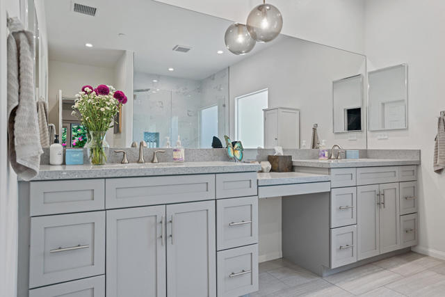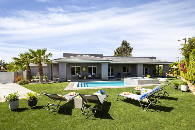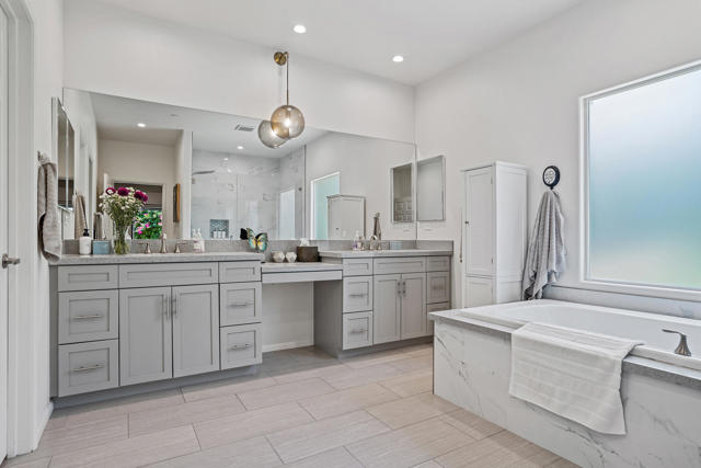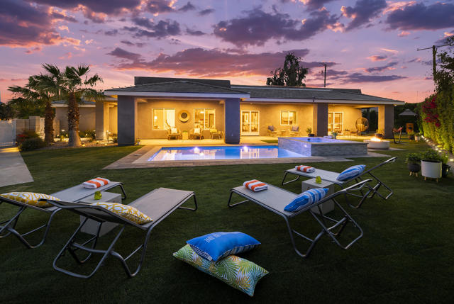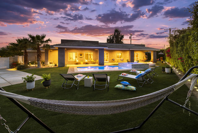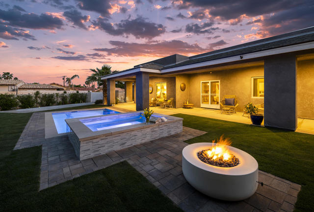 Whether you're seeking a full-time residence, vacation escape, or a profitable rental, this newer Bermuda Dunes gem blends luxury, comfort, and practicality in one of the desert's most desirable locations. A true Desert Retreat with Resort-style living.Constructed in 2019 and ideally located at the end of a quiet cul-de-sac just outside the gates of Bermuda Dunes Country Club, this custom-built home offers the rare advantage of no HOA fees. Set on nearly a quarter-acre lot, the property offers privacy, space, and the perfect setting to enjoy the relaxed desert lifestyle--both indoors and out.Resort-Style Backyard:Completed in 2023, the landscaped backyard and pool/spa were designed for both entertaining and everyday enjoyment. The sparkling pool and spa anchor the outdoor living space each with separate Pentair equipment. Permitted 12x14 covered patio serves as outdoor dining. A separate RV/boat parking pad with gated access ensures you're ready for any adventure.Bright & Open Living Spaces:The light-filled, open-concept floor plan is ideal for hosting family and friends. With generous living areas and seamless flow, it's the ultimate retreat for relaxing or entertaining.Gourmet Kitchen:The heart of the home features a large center island, quartz countertops, stainless steel appliances, pantry and ample cabinetry--a true chef's dream. An alkaline water system is installed with faucet for cold drinking water as well as boiling water directly from the spout.Tranquil Primary Suite:Tucked away for privacy, the primary bedroom is a serene sanctuary with direct patio access, two closets (including a spacious walk-in measuring 15x12), and a luxurious spa-like ensuite bath with imported marble dual vanities, a deep soaking tub, and walk-in tiled shower.Well-designed Layout:Two additional well-sized bedrooms offer comfortable accommodations for visitors. A second bath is adjacent to bedrooms and a powder room is close to great room. Bath counters are 100% imported marble.Ample storage throughout the home ensures everything stays organized.Garage & Parking:A three-car garage provides plenty of parking and built-in wall storage, while the dedicated RV parking area offers even more flexibility.Most of the gorgeous furnishings shown in these photos can be offered for additional sale, making this a turnkey solution for a lucky buyer.Short term rentals allowed, buyer to confirm to their satisfaction.