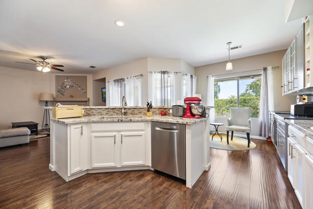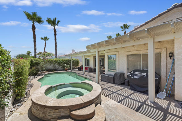 Welcome to this beautifully updated 4 bedroom, 3 bathroom home in the highly desirable Sonrisa community is centrally located in the heart of La Quinta! This spacious residence offers thoughtfully chosen finishes, including wood-look flooring, granite slab countertops, and stainless steel appliances. The open concept kitchen flows into the family room and breakfast nook, with views of the sparkling pool and spa, perfect for indoor-outdoor living.Enjoy a flexible layout with formal living and dining areas, ideal for both relaxing and entertaining. The expansive primary suite is a private retreat, featuring a spa-like bathroom with a large walk-in shower, soaking tub overlooking the garden, and dual vanities.With three additional generously sized bedrooms and two more full bathrooms, this home is ideal as a primary residence, vacation home, or investment property. The location is unbeatable, just minutes from top schools, shopping, dining, and so much more! Don't miss your chance to own this desert gem, schedule your private tour today!