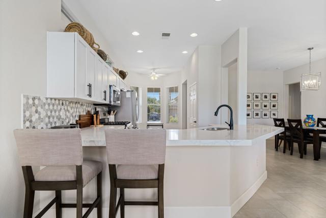 Perfectly positioned on the 3rd green of Heritage Palms golf course, this beautifully renovated home offers an intimate golf experience right from your patio as well as sweeping fairway and mountain views, in a coveted 55+ resort community. This beautifully updated home offers 2 bedrooms/2 baths, and an open concept layout making it a light and bright living experience.The stunning kitchen is a true highlight, featuring sleek quartz countertops, crisp white cabinetry, stainless steel appliances, and a custom tile backsplash. A spacious utility room provides additional storage and even space for a small office nook. Smart Home features allow you to manage your home from anywhere, making it an ideal seasonal retreat or low-maintenance year-round residence.As an added bonus, a golf cart is included, so you can easily access the community's outstanding amenities.Living in Heritage Palms means enjoying a 55+ active adult community with 24 hour security and exceptional amenities: an 18-hole championship golf course, clubhouse with restaurant and lounge, fitness center, indoor and outdoor pools, pickleball and tennis courts, billiards, library, and a vibrant calendar of social events and clubs.Whether for the season or year-round, this home offers the perfect blend of style, comfort, and resort-style living.