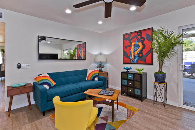 New Competitive Pricing. Presenting 1221 Sunflower Lane. A Light-Filled Retreat with Expansive Private Garden in a Resort-Style Community. This beautifully updated 2-bedroom, 2-bath home welcomes you through a frosted glass entry door, filling the living space with natural light. The freshly updated kitchen features bright white cabinetry, solid surface countertops, a stunning tiled backsplash, and a convenient pantry. The primary suite is a true retreat with garden access, a newly redone bath boasting a gorgeous tiled shower, and a large walk-in closet. The hallway to the bedrooms is lined with custom built-in cabinets, offering abundant storage. Sliding glass doors in the living area open to an expansive private patio and an oversized wraparound garden, where you'll find prize-winning roses, newly planted trees, built-in seating, and a covered patio for year-round enjoyment. A private gate provides direct access to a path leading to the nearest pool and spa. Additional features include indoor laundry area with side-by-side washer & dryer, spacious second bedroom and bath for guests, private single car garage, and fresh landscaping with multiple outdoor living spaces. Beyond the home, enjoy a vibrant community lifestyle with 8 sparkling pools and spas, both pickleball and tennis courts, basketball courts, a putting green, and a pet area -- all just steps away. This home offers the perfect balance of comfort, charm, and resort-style living--ready for you to move right in.