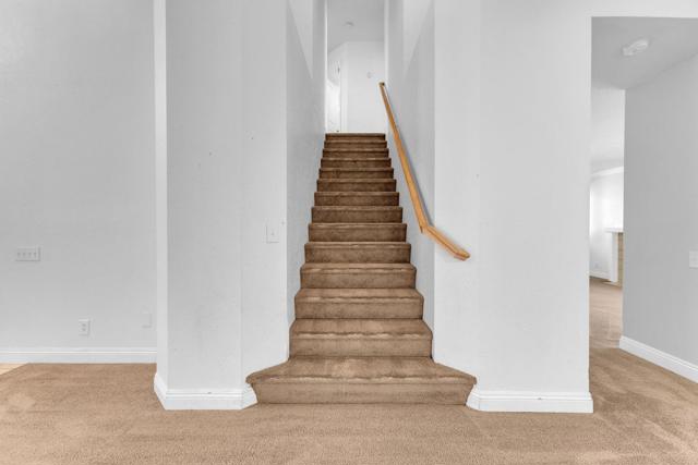 AMAZING OPPORTUNITY! Beautiful two-story, three-bedroom home located on an oversized cul-de-sac lot in the peaceful, gated community of Parc La Quinta. The property offers a large, private yard with no direct views from neighbors, ensuring complete privacy. Inside, the home is decorated in a soft seafoam green with stylish baseboards and is in immaculate, move-in ready condition.