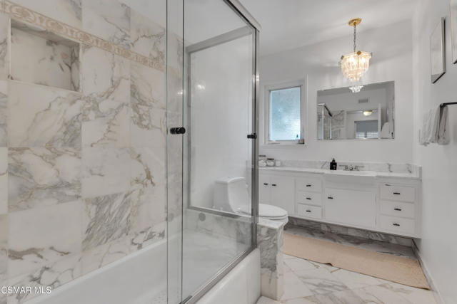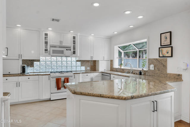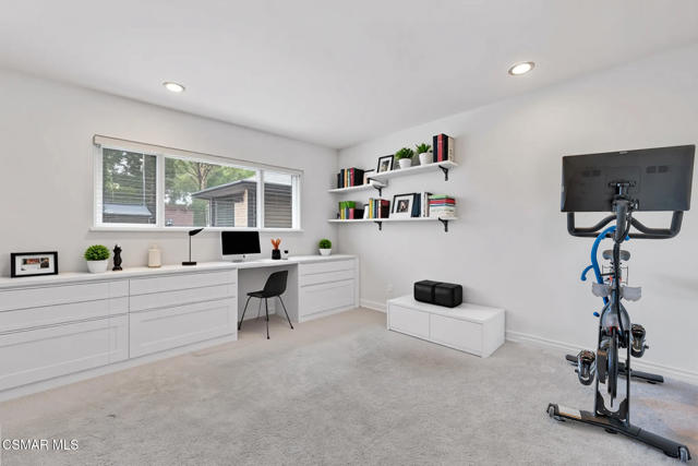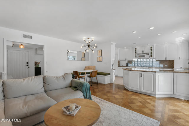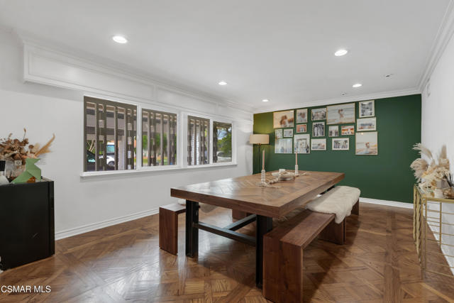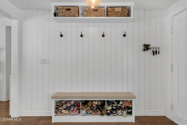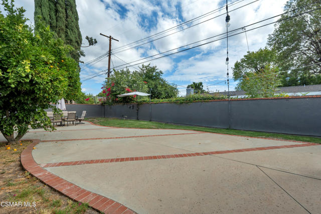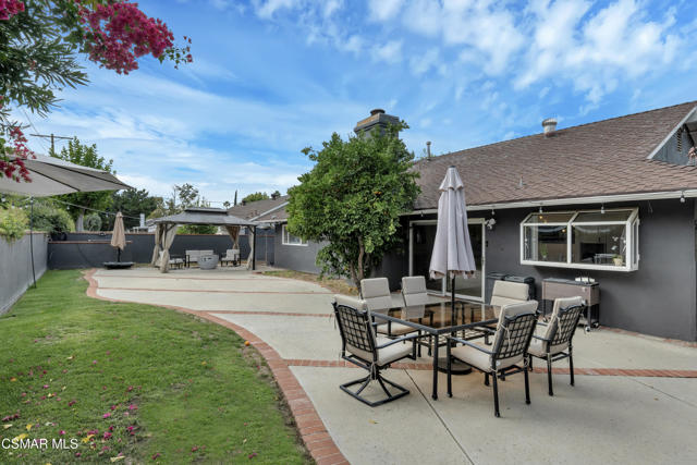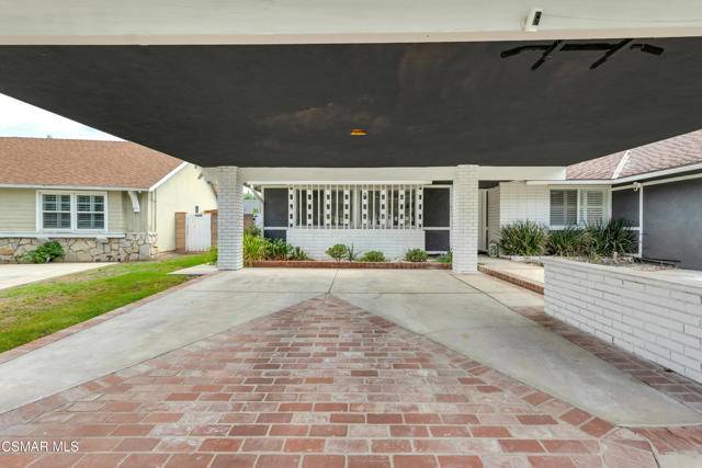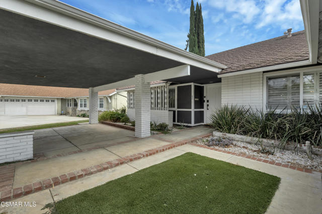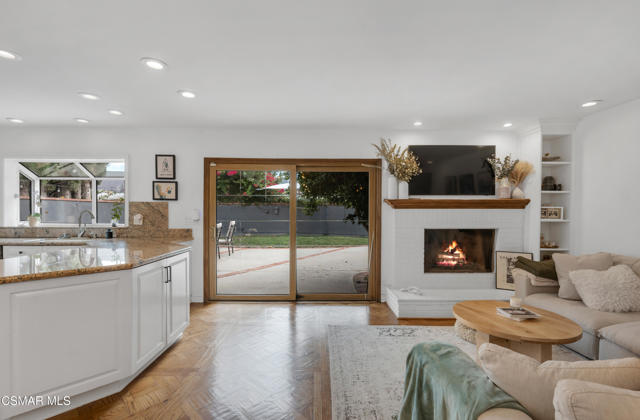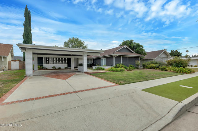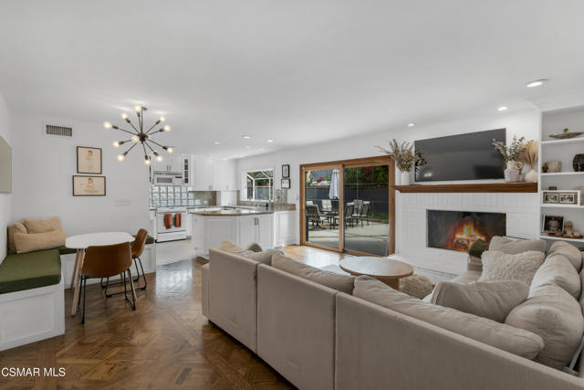 This charming mid-century single-story home offers over 2,100 square feet of living space and presents an incredible opportunity in the heart of Canoga Park. Thoughtfully updated while maintaining its original character, the residence has been lovingly cared for by the same family since it was built. Step inside to a welcoming entryway that blends both design and function, featuring shiplap walls and a custom built-in bench and shelving. Gorgeous parquet wood floors flow throughout the main living spaces, leading you to a spacious dining room, flexible enough to serve as a second living or family room, with large front-facing windows that fill the space with natural light. The inviting family room centers around a classic white brick fireplace and connects seamlessly to the breakfast nook with its custom built-in bench. The oversized kitchen is designed for both style and functionality, offering granite countertops, a Sub-Zero refrigerator, abundant storage, and a large peninsula perfect for entertaining. Down the hall, you'll find two comfortable guest bedrooms and a beautifully remodeled bathroom complete with a glass shower and timeless marble finishes. The en-suite primary bedroom is a true retreat, highlighted by plantation shutters and a wall of mirrored closets that maximize space and light. The converted garage provides a massive bonus room with endless possibilities, ideal as a home office, fourth bedroom, game room, or creative studio. With sliding doors opening to the front patio, this versatile space also includes the home's laundry area and is conveniently accessed through the primary suite. Out back, the private yard is designed for relaxation and entertaining, featuring mature orange and grapefruit trees, and offering a large flexible setting for both gatherings and quiet lounging. Ideally located, the property is just minutes from Topanga Village, Shadow Ranch Park, the Fallbrook Center, and an abundance of restaurants and shopping.