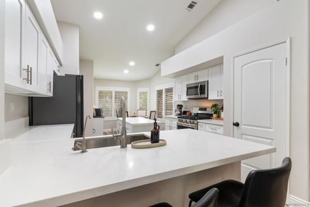 Welcome to 31867 Crecy Drive! A beautifully updated single-story retreat where comfort, convenience, and modern living come together. Step inside this 3 bed, 2 bath home offering light-filled living with vaulted ceilings, flexible office nook, new crown molding, fireplace, custom shutters with a lifetime warranty, and a custom designed walk-in closet. Every detail has been thoughtfully upgraded to make this home truly move-in ready. Dream Kitchen: Cook and entertain with ease in a modern kitchen featuring quartz countertops, white shaker cabinetry, a new Samsung Bespoke Smart Refrigerator with beverage center, Samsung Smart dishwasher, and a premium Puronics Hydronex whole-home water softener with Alkaline reverse osmosis filtration in the kitchen. Outdoor Living: Relax and entertain in a spacious backyard retreat complete with Alumawood covered patio, low-maintenance turf lawn, built-in ground trampoline, cozy firepit for sunset views, raised garden beds, a producing lemon tree, gated dog run, and an insulated shed; the perfect space for entertaining, gardening, or unwinding under the stars. Smart & Efficient Upgrades: Includes a ChargePoint 240-volt EV charger, A/C with smart thermostat, and the added peace of mind of solar panels on the roof and shed producing energy for long-term efficiency and savings for the home. Located in the desirable Temecula School District with quick access to both the I-15 and I-215, this home blends fresh finishes, thoughtful upgrades, and a prime location; offering the perfect balance of style, functionality, and convenience.