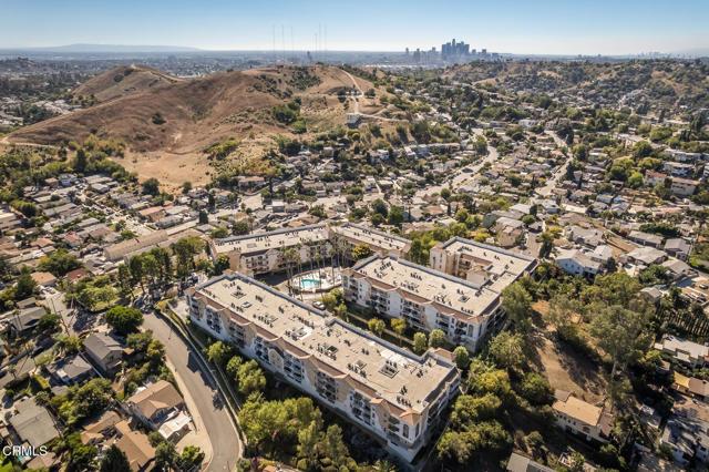 Welcome home to Hilltop Colony, a tranquil gated community in El Sereno. This 3 BED 3 BATH condo offers breathtaking hillside views. Enjoy peaceful natural surroundings and easy access to transportation and urban amenities! Enter through gates at the staffed guard kiosk. Then park conveniently in either of two assigned tandem spaces in the garage, with EV charging and access to the elevator to the 2nd floor. This condo offers two private entrances, one upstairs and one downstairs! The first floor entry is a privately enclosed patio providing natural light and open air access to the front door. Upon entering, find a bright kitchen with a greenhouse window for growing herbs or allowing wonderful natural light. The kitchen also has a pass through to the dining and living area. An open floor plan allows you to enjoy the breezes and views from living room to balcony, while relaxing by the cozy fireplace. New carpet throughout, and in-unit laundry are also featured. The three bedrooms, all separated, have access to different bathrooms, allowing for privacy and spaciousness. One first floor bedroom opens to the front patio, another large bedroom has an en-suite bath and walk-in closet. The second-floor suite offers its own entry, and a full bath. Finally, you'll have use of a BBQ area, children's playground, and community swimming pool with spa, as well as common area gathering spaces. Convenient to Downtown LA, Pasadena, Alhambra, Highland Park, USC Health science campus.