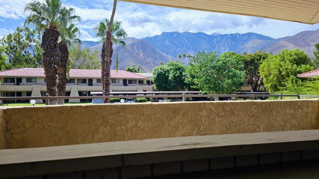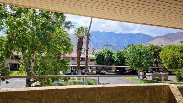Welcome to a beautifully updated upstairs end unit in the highly desirable Palm Springs Villas II community. This stylish retreat blends comfort, design, and location--perfect for a full-time home, a seasonal escape, or an investment opportunity just minutes from the heart of Palm Springs. As one of the few end units with an additional side window, this home enjoys extra natural light and an airy, open feel throughout. Step inside to discover a bright, modern living space featuring an open-concept layout and panoramic mountain views from nearly every room. The living and dining areas open to a private balcony where you can relax with your morning coffee or unwind as the sun sets behind the San Jacintos. The kitchen is a showstopper--sleek quartz counters, stainless steel appliances, and European-Modern cabinets that even Iron Man would approve of. Every detail has been thoughtfully considered, from the upgraded flooring and recessed lighting with dimmers to the modern finishes that create an effortlessly sophisticated vibe. The bathroom has been completely reimagined with a walk-in glass barn-door shower, quartz vanity, and designer touches throughout. The spacious bedroom offers generous closet space and a serene atmosphere ideal for rest and recharge. Both the bathroom and bedroom fitted with custom Mahogany doors. Set within a gated community known for its lush landscaping, residents enjoy access to multiple heated pools and spas, tennis courts, putting greens, and beautifully maintained open spaces. Covered parking and plenty of guest parking make life here both easy and enjoyable. And yes--you own the land! Whether you're looking to invest, downsize, or simply live the desert lifestyle, this fully furnished, move-in-ready condo has it all. Come experience modern Palm Springs living at its best!